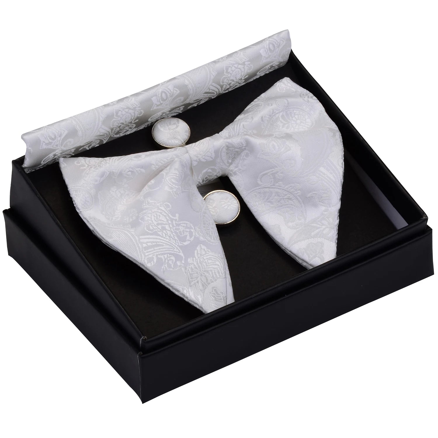 GUSLESON Paisley grand noeud papillon hommes bleu rouge jaune noeud papillon poche carré boutons de manchette ensemble avec boîte cadeau soie mariage cravate pour homme