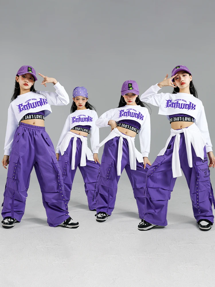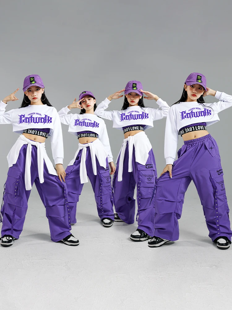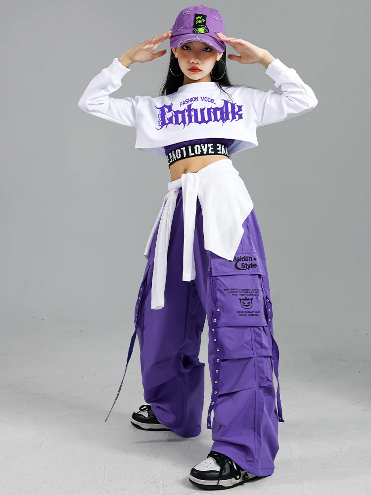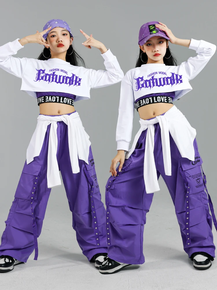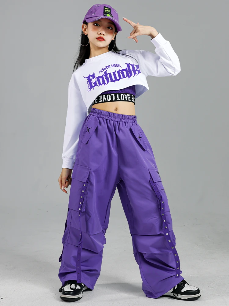 Haut court K-pop pour filles, pantalons cargo, cardigan de danse de rue pour enfants, olympiques streetwear pour enfants, ensembles de vêtements de groupe de filles Jazz