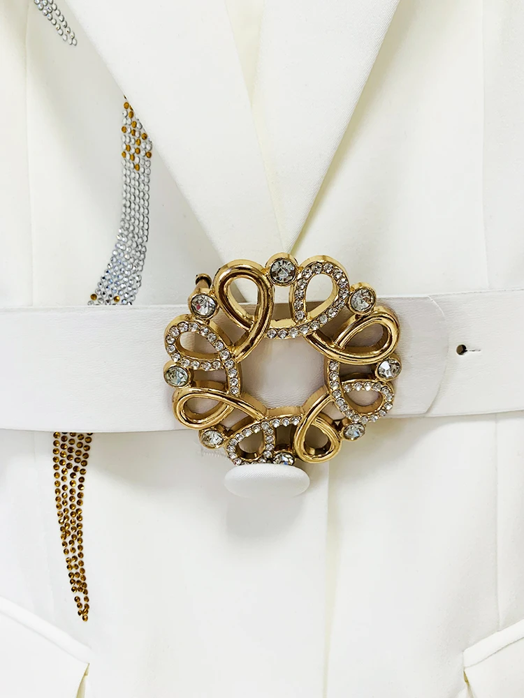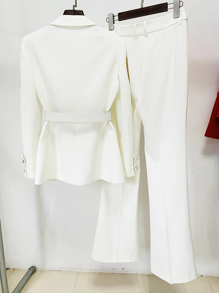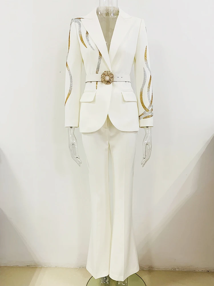 HIGH STREET nouvelle mode 2025 concepteur piste costume ensemble femmes diamants colorés ceinturé Blazer Flare pantalon costume 2 pièces