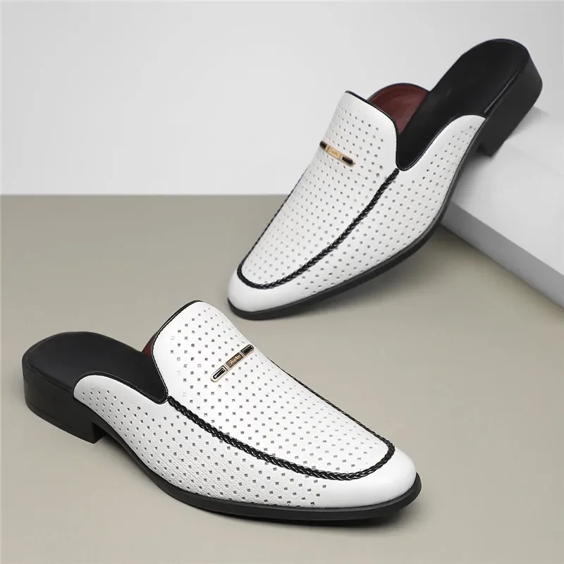 Hommes jaune blanc noir demi pantoufles chaussures de conduite 2025 nouveau décontracté en cuir verni Mules mocassins Zapatos Hombre