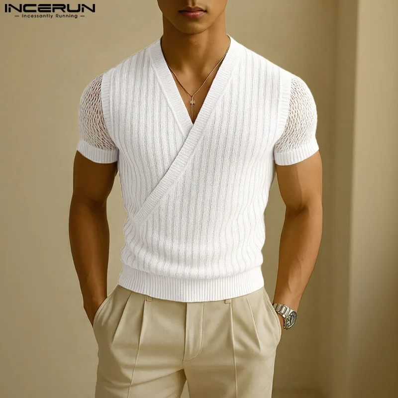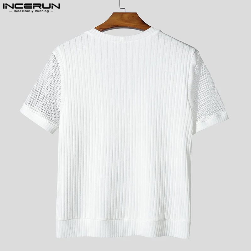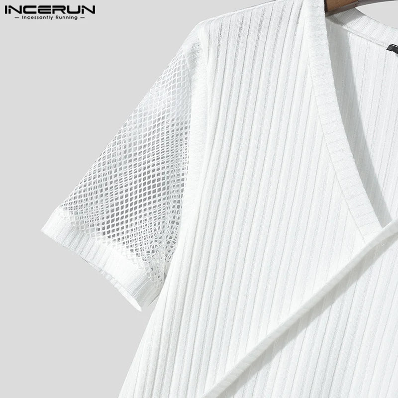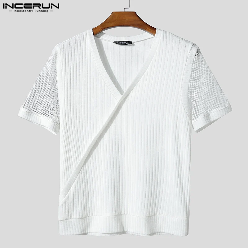 Hauts hommes T-Shirts à manches courtes maille Patchwork hauts t-shirt couleur unie col en V mode vêtements pour hommes Streetwear S-5XL