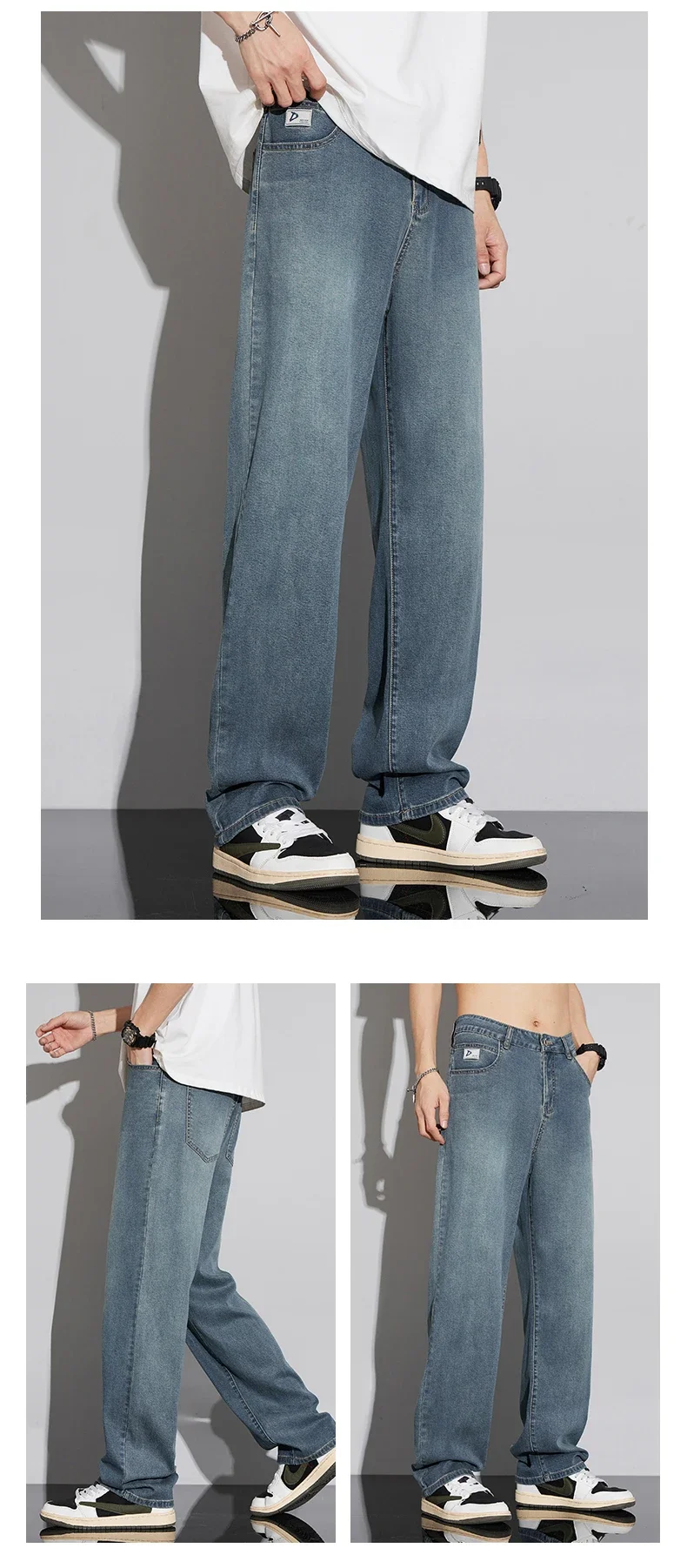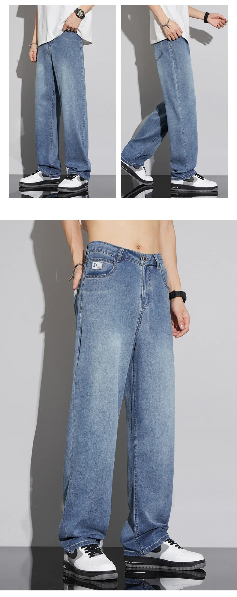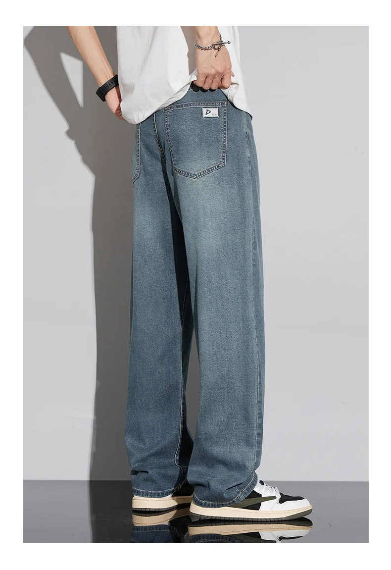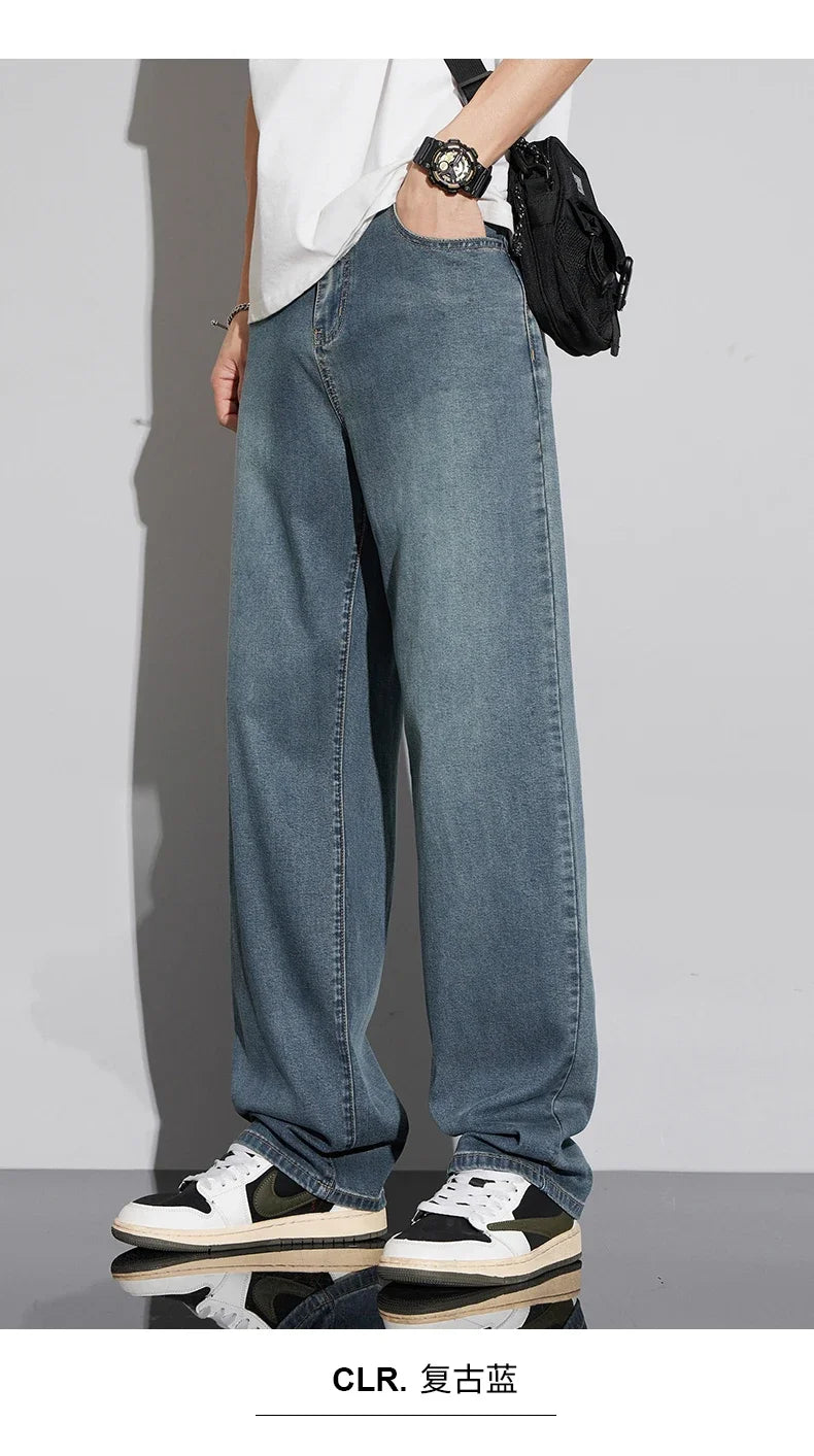 Jean Baggy d'été pour hommes, Baggy, drapé doux, ample, confortable, jambes larges, pantalon en soie glacée, rétro, élastique, décontracté, Denim