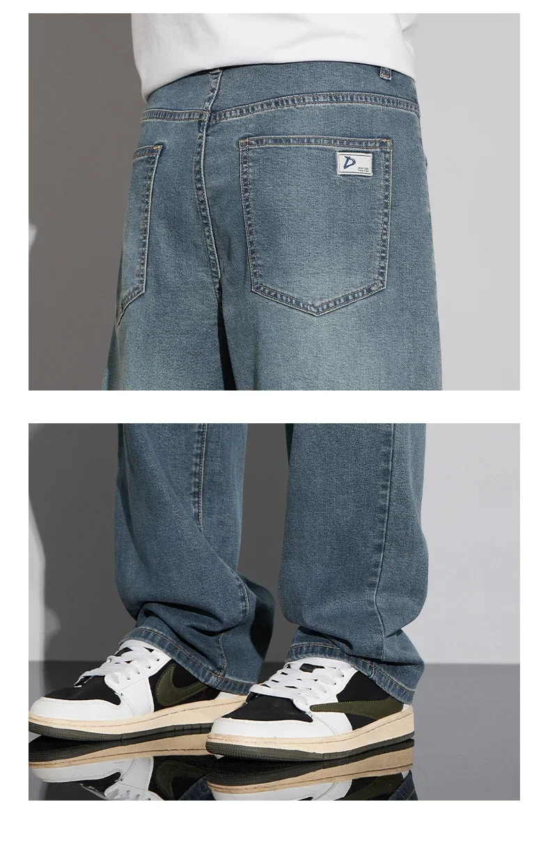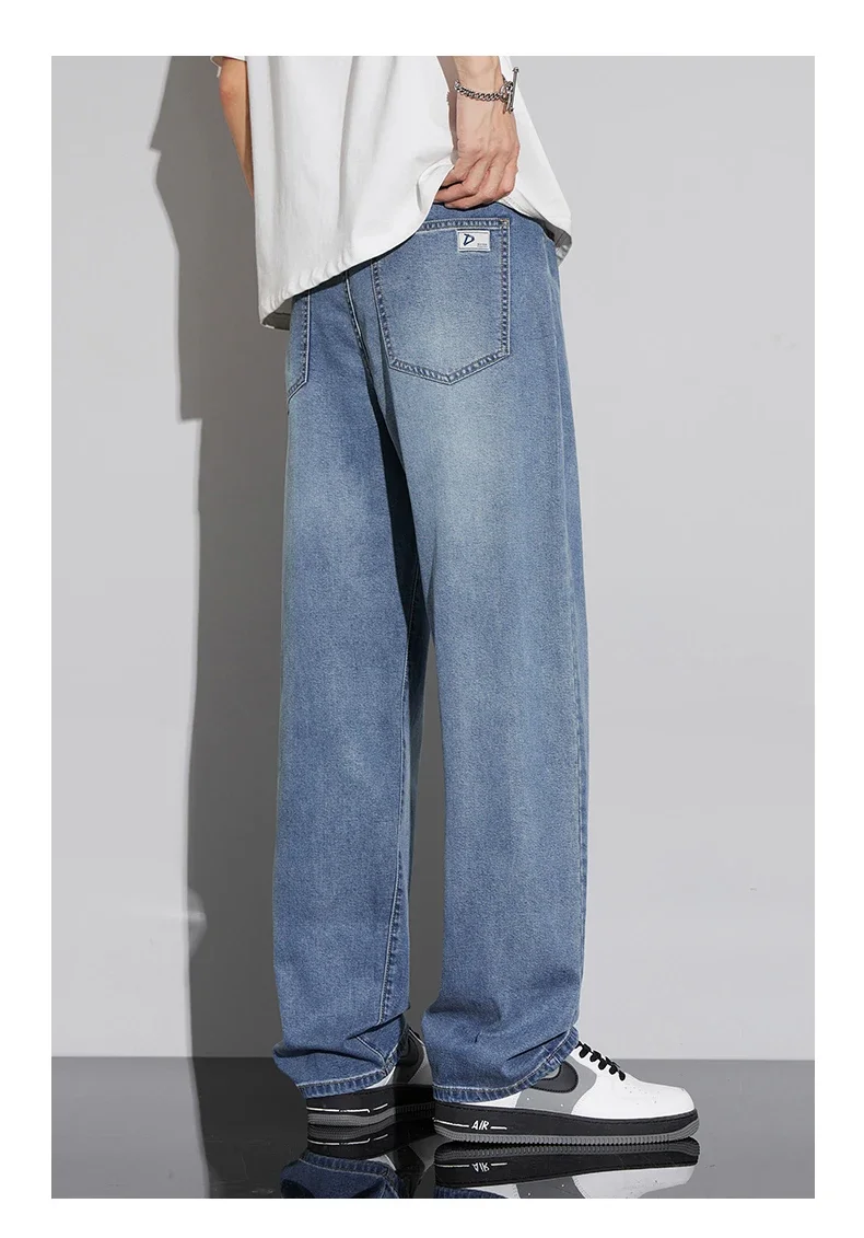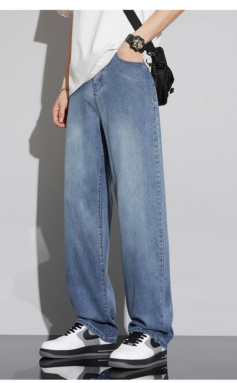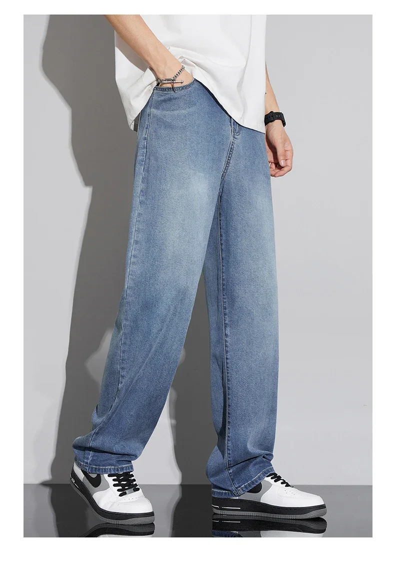 Jean Baggy d'été pour hommes, Baggy, drapé doux, ample, confortable, jambes larges, pantalon en soie glacée, rétro, élastique, décontracté, Denim