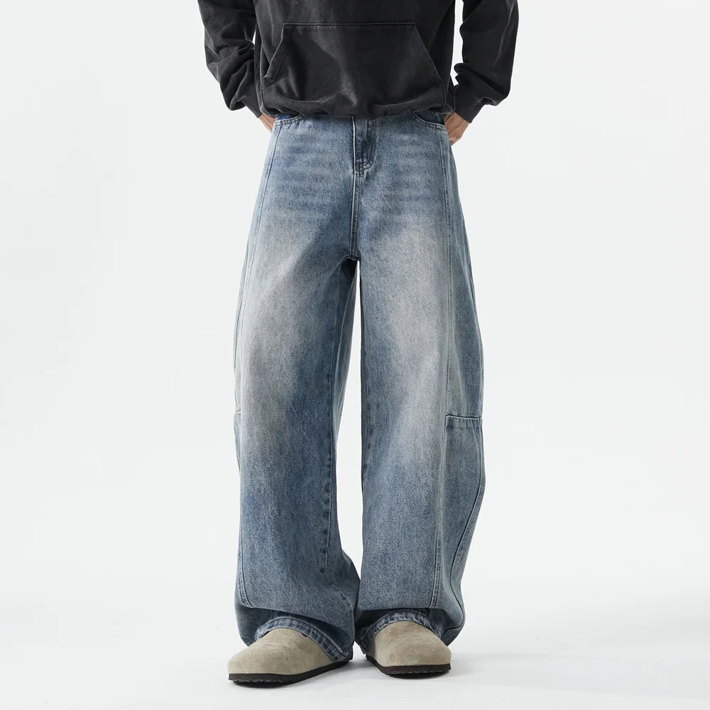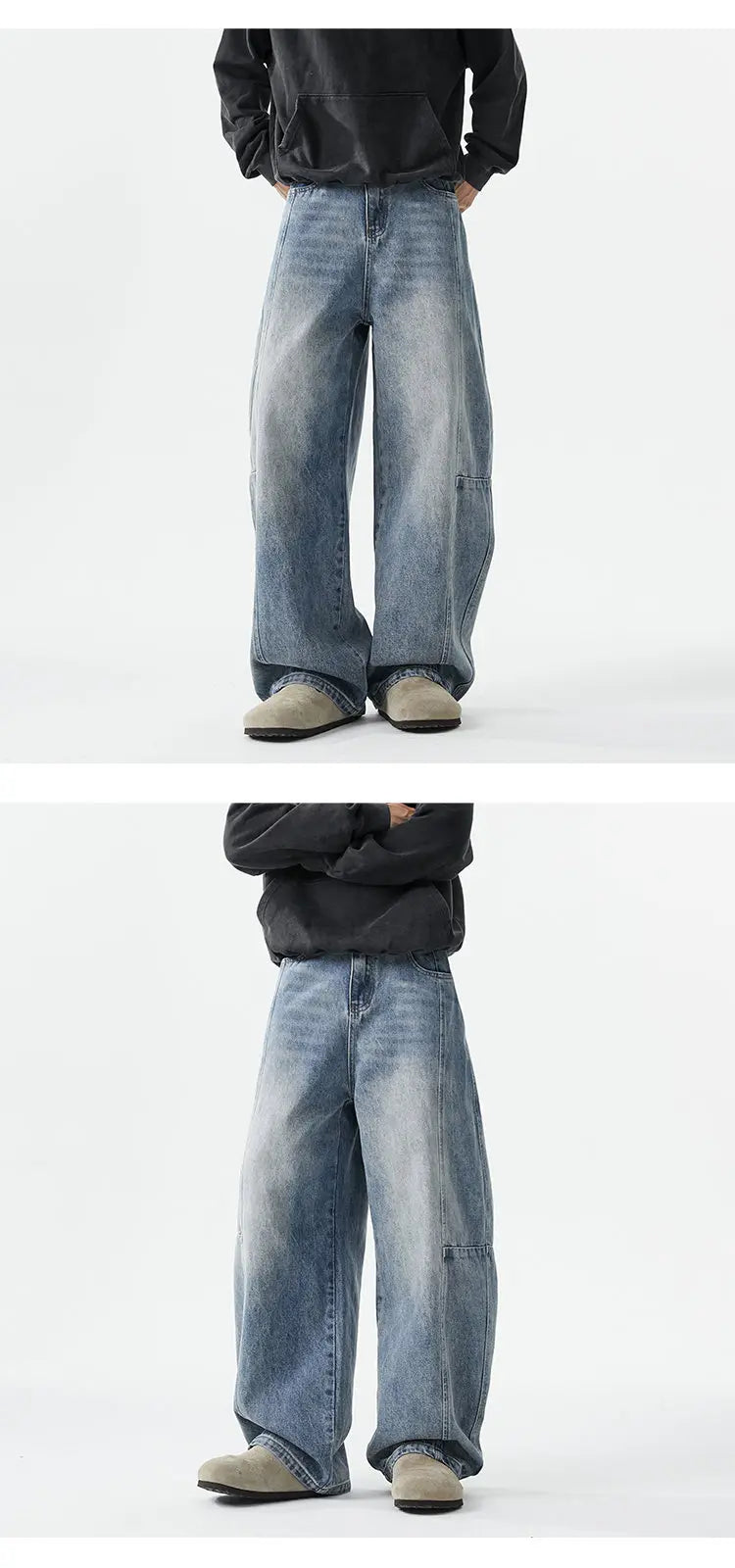 Jeans baggy à jambes larges pour hommes, Jeans Boyfriend, High Street, Hip Hop, Bleu, Blanc, Denim Harem, Pantalon décontracté