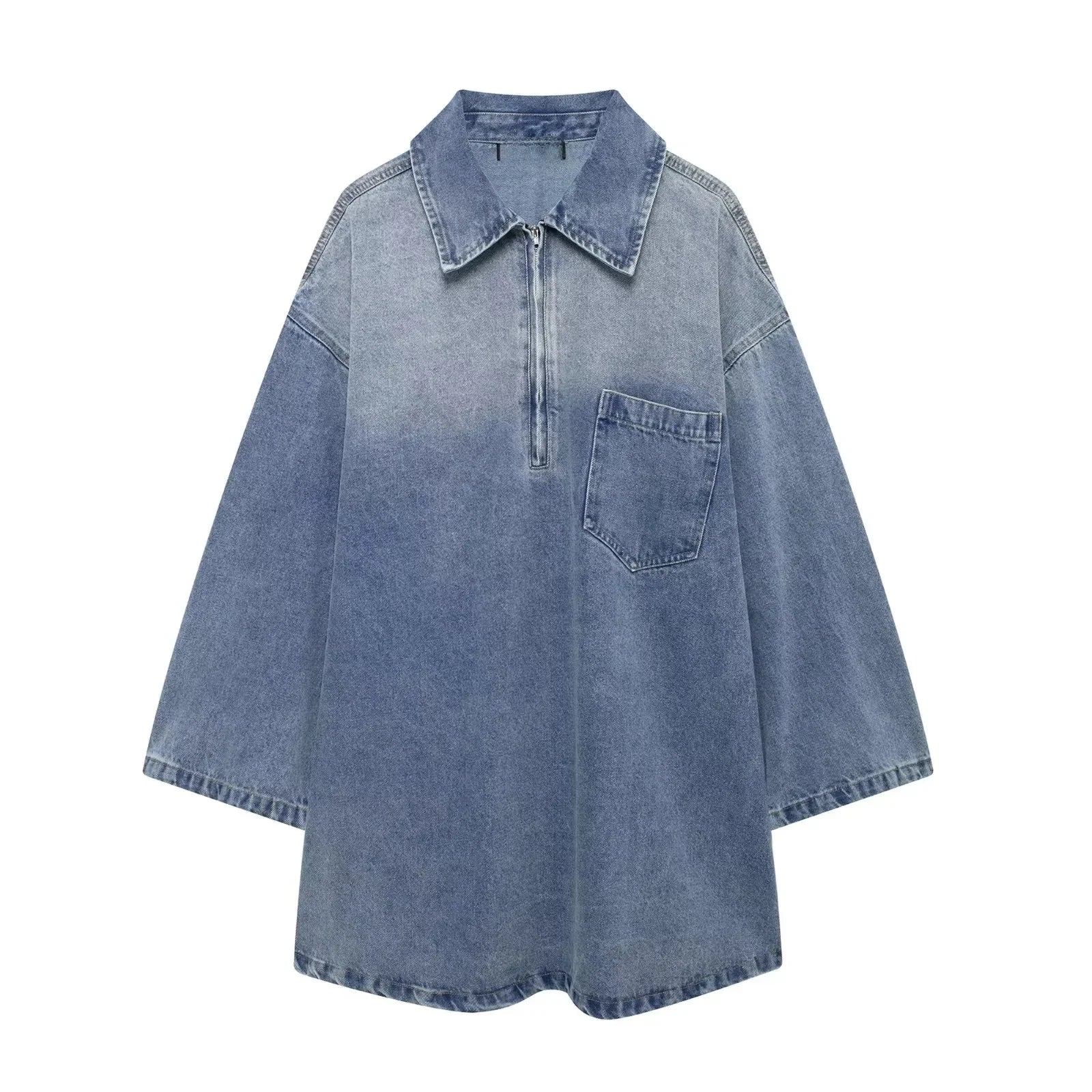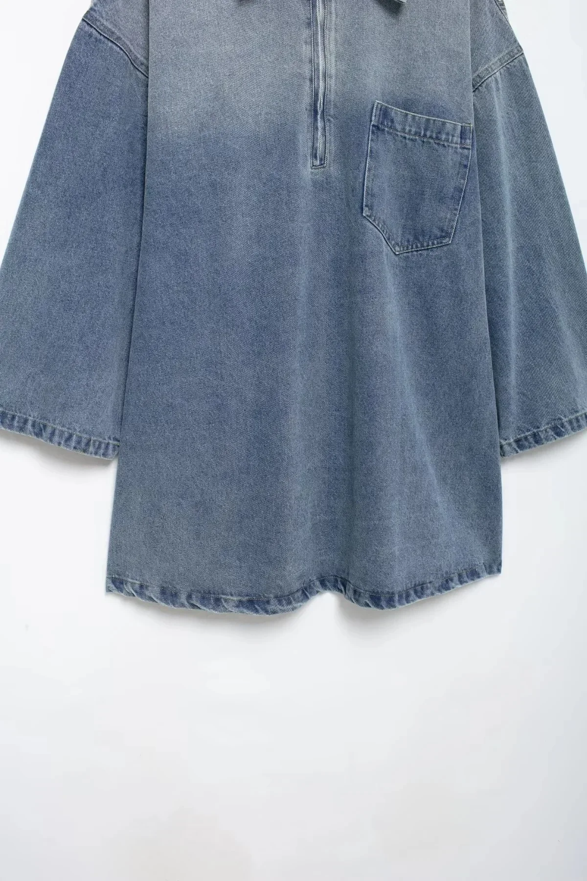 • Jupe en jean dégradé à fermeture éclair:Dotée d'un design dégradé de fermeture éclair unique sur la jupe, cette robe se distingue par sa touche tendance et moderne.