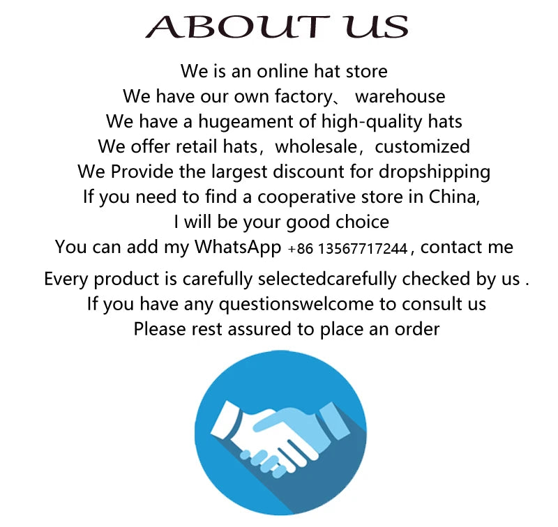 1. Tous les chapeaux du magasin sont en stock. Les commandes sont expédiées dans l'ordre de paiement, vous pouvez donc acheter en toute confiance.