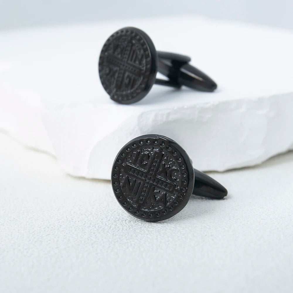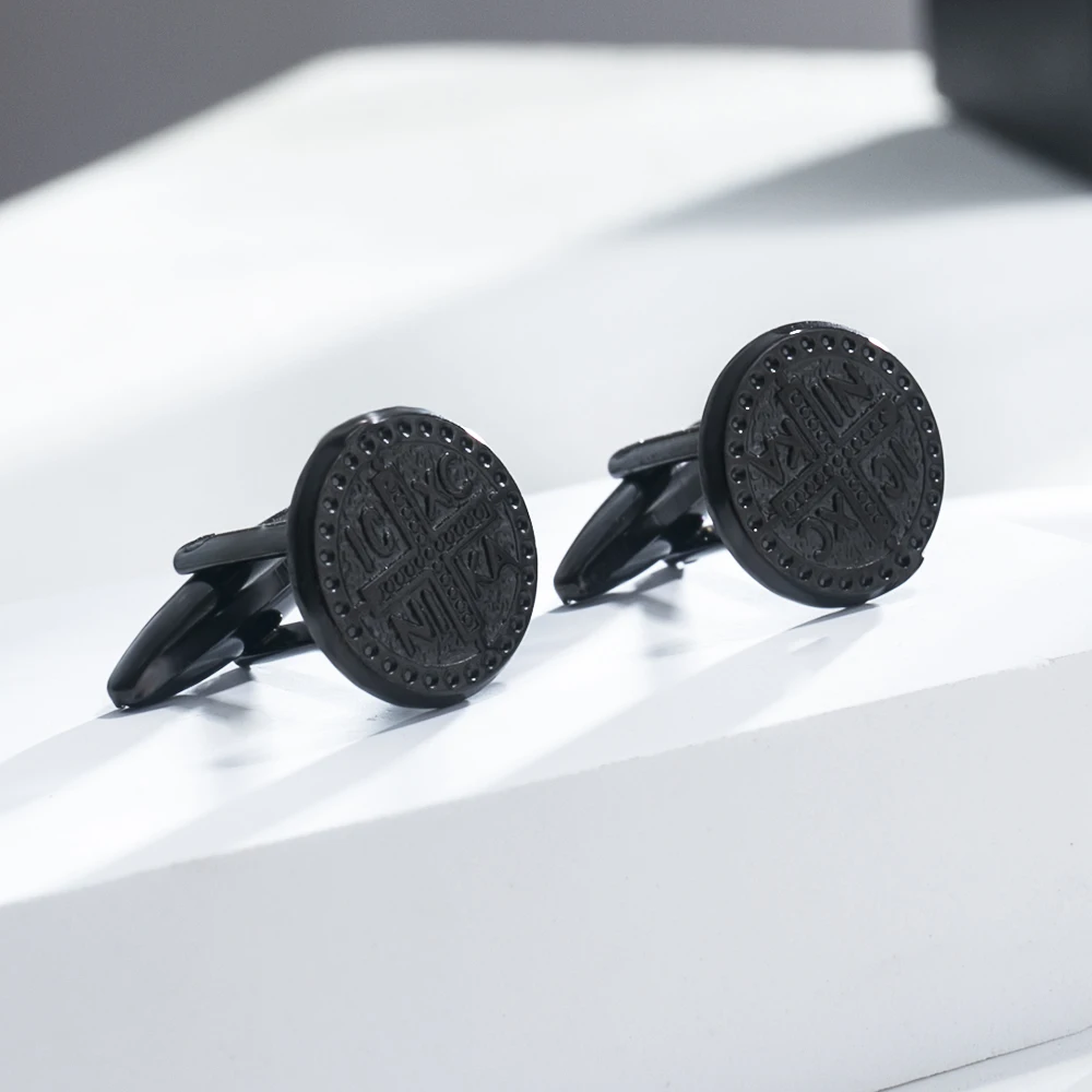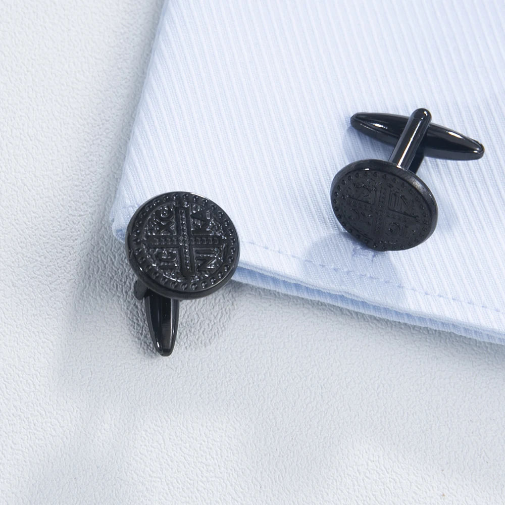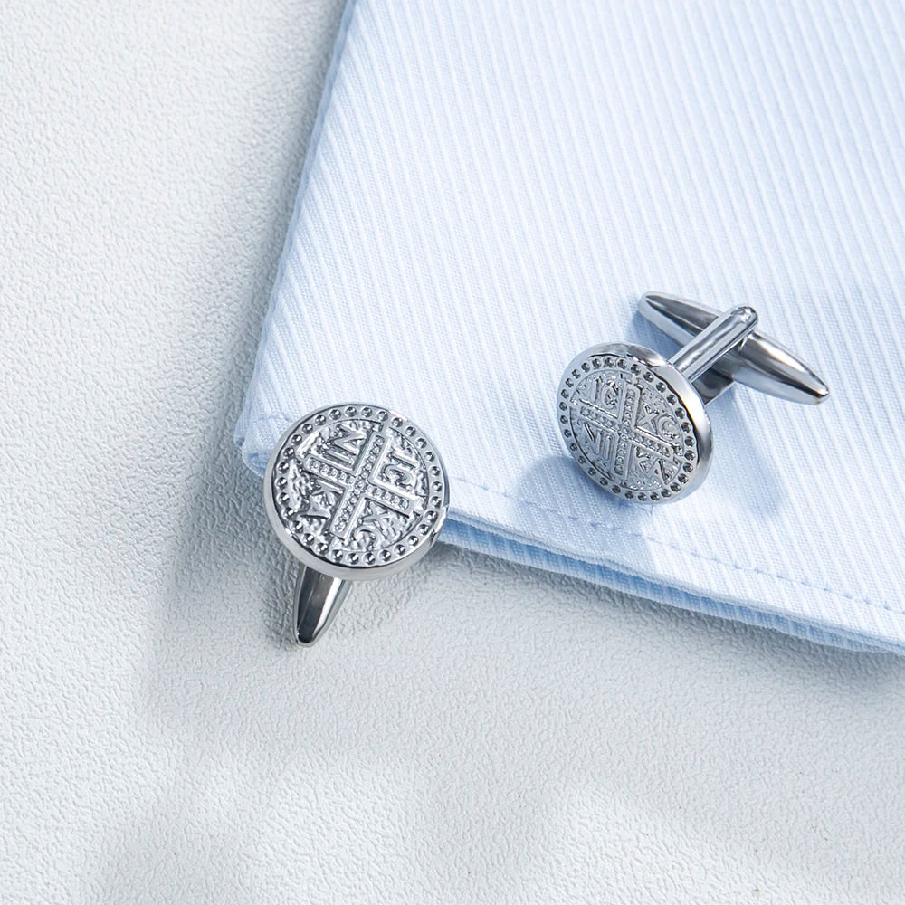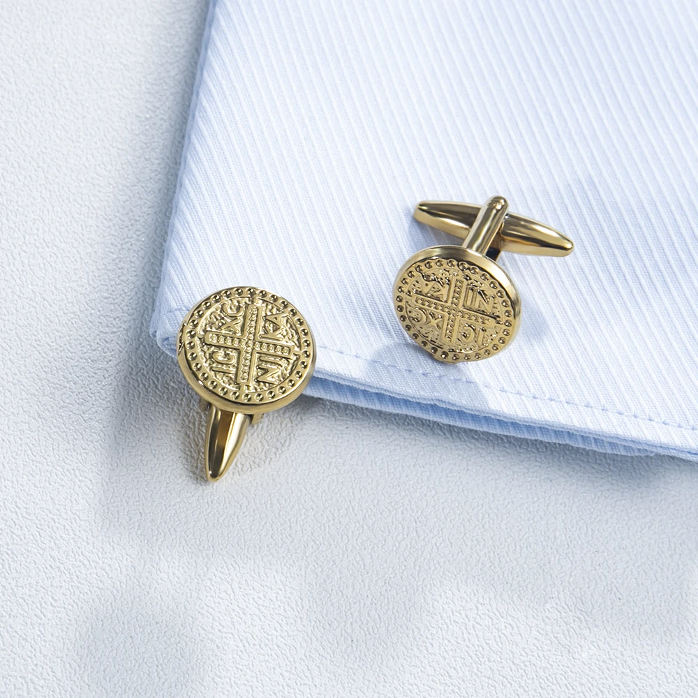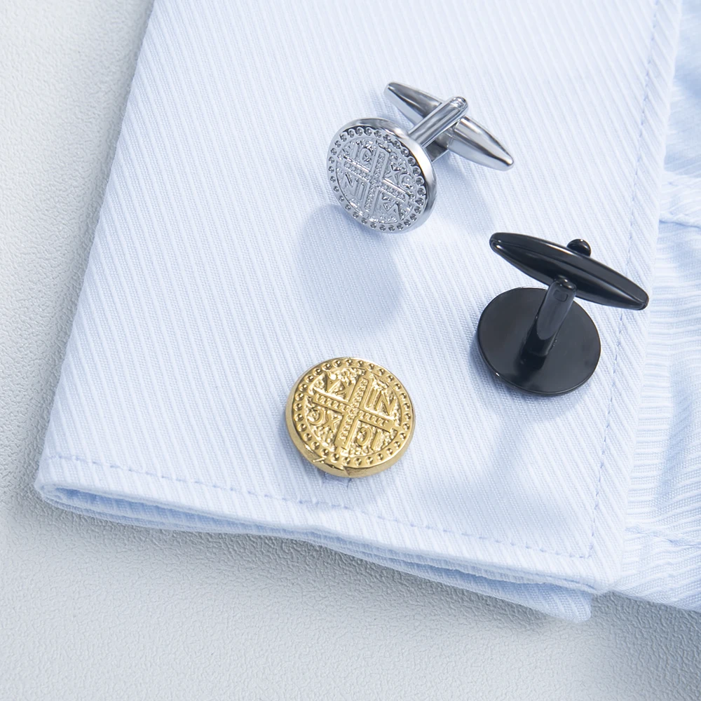 Lèvent de manchette ronds en acier inoxydable pour chemises pour hommes, bijoux de foi de Jésus, souvenir de mariage, rétro, plus riche ula, ConTim or