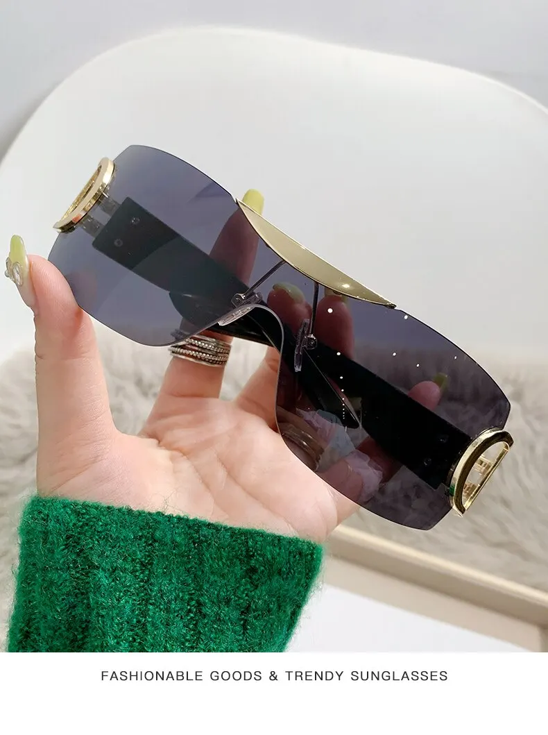 Lunettes de soleil Y2K sans monture pour femmes, lunettes de soleil sans cadre, nuances de chimshield, futuriste, respirant, unisexe, rond, mode