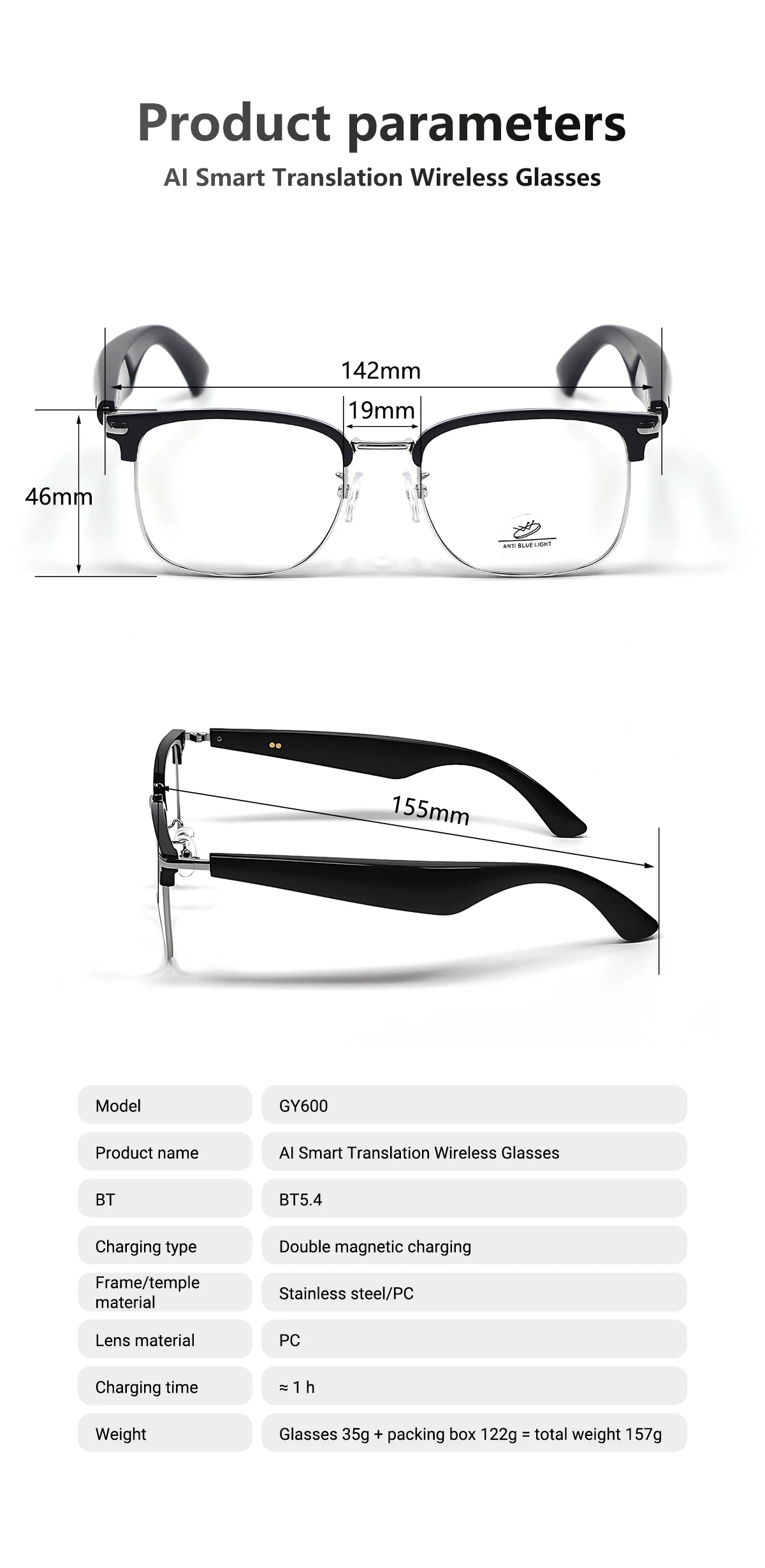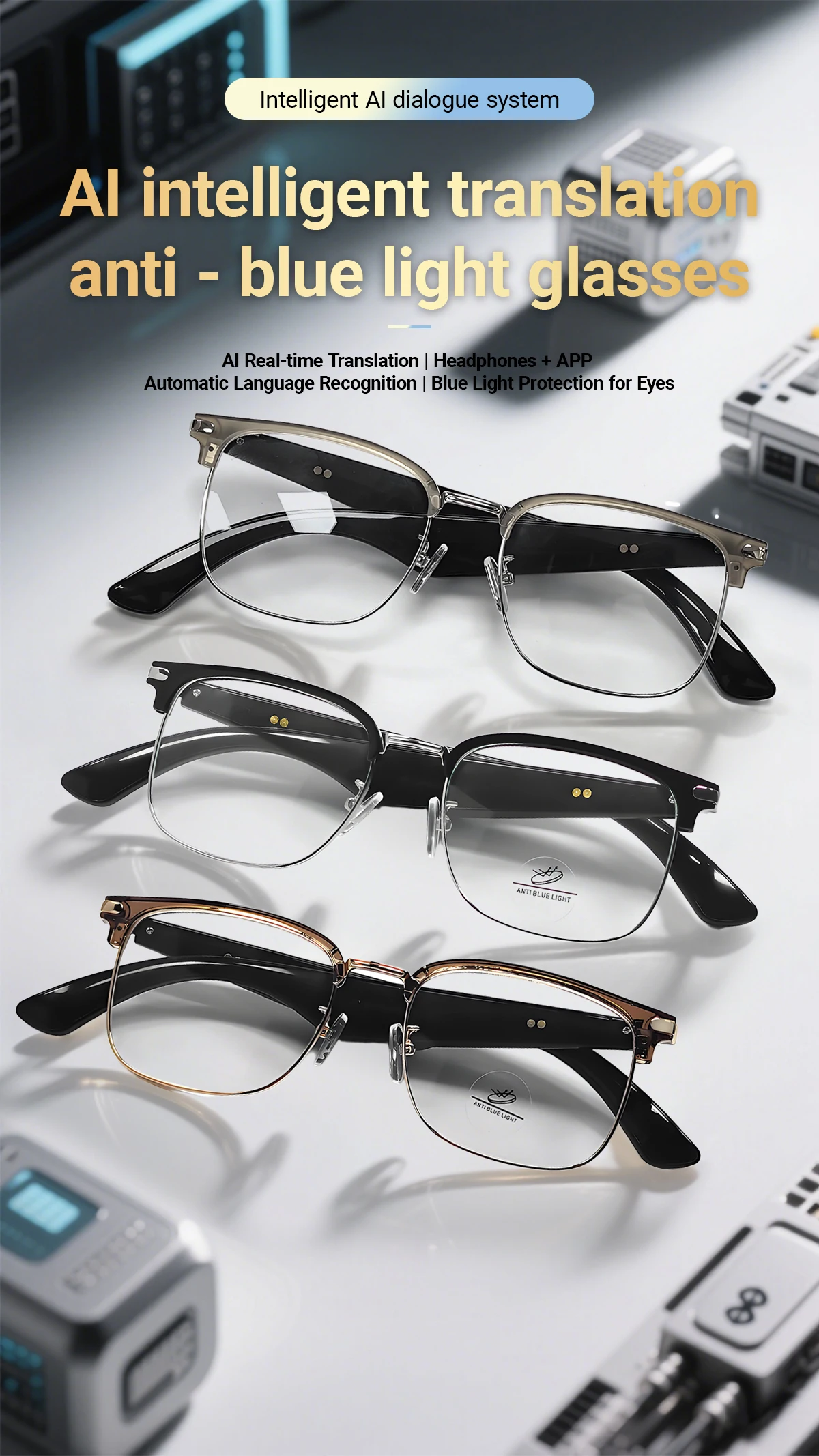 Lunettes intelligentes AI, traduction multilingue, réponse au téléphone, écouter de la musique, Protection des yeux d'été, lumière bleue, lunettes de mode