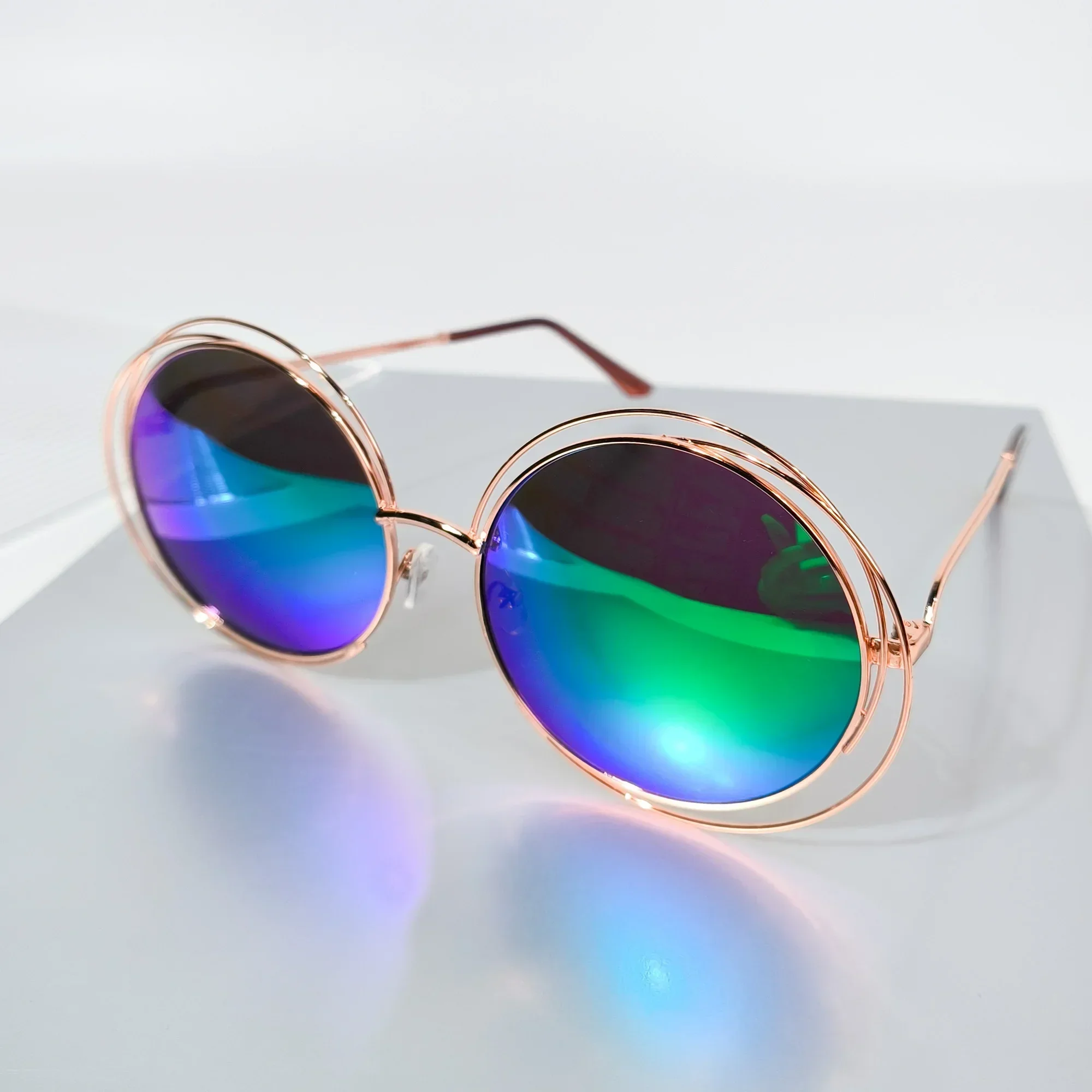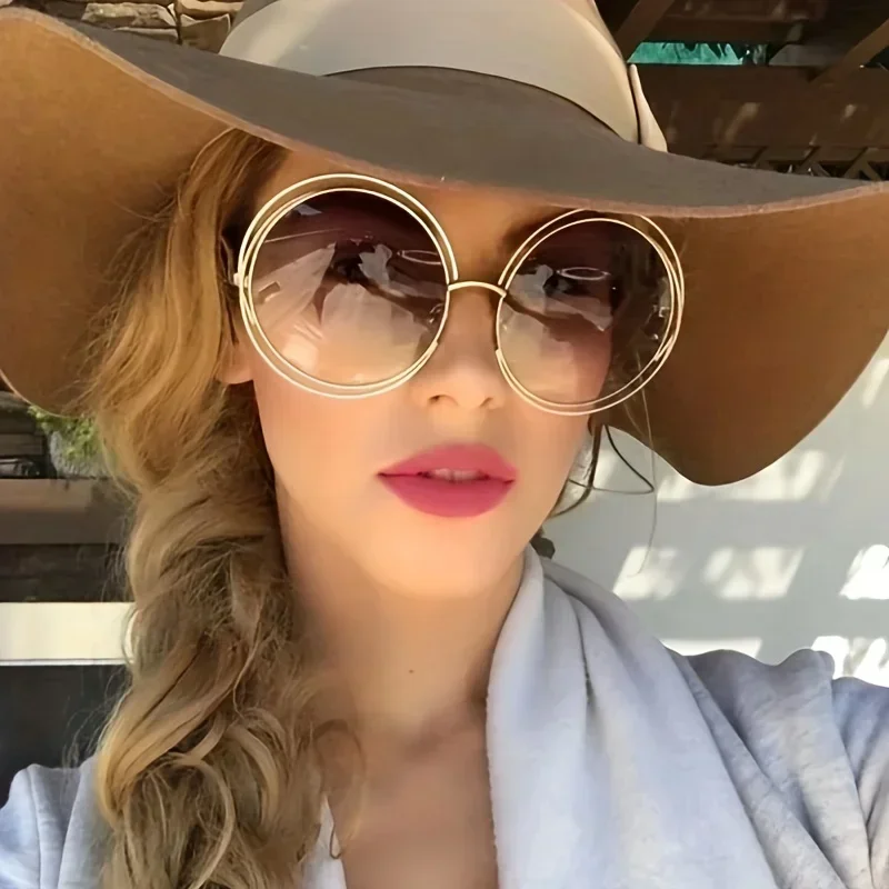 Lunettes rondes surdimensionnées en métal pour femmes avec verres dégradés – Design rétro élégant, fêtes et événements, accessoires