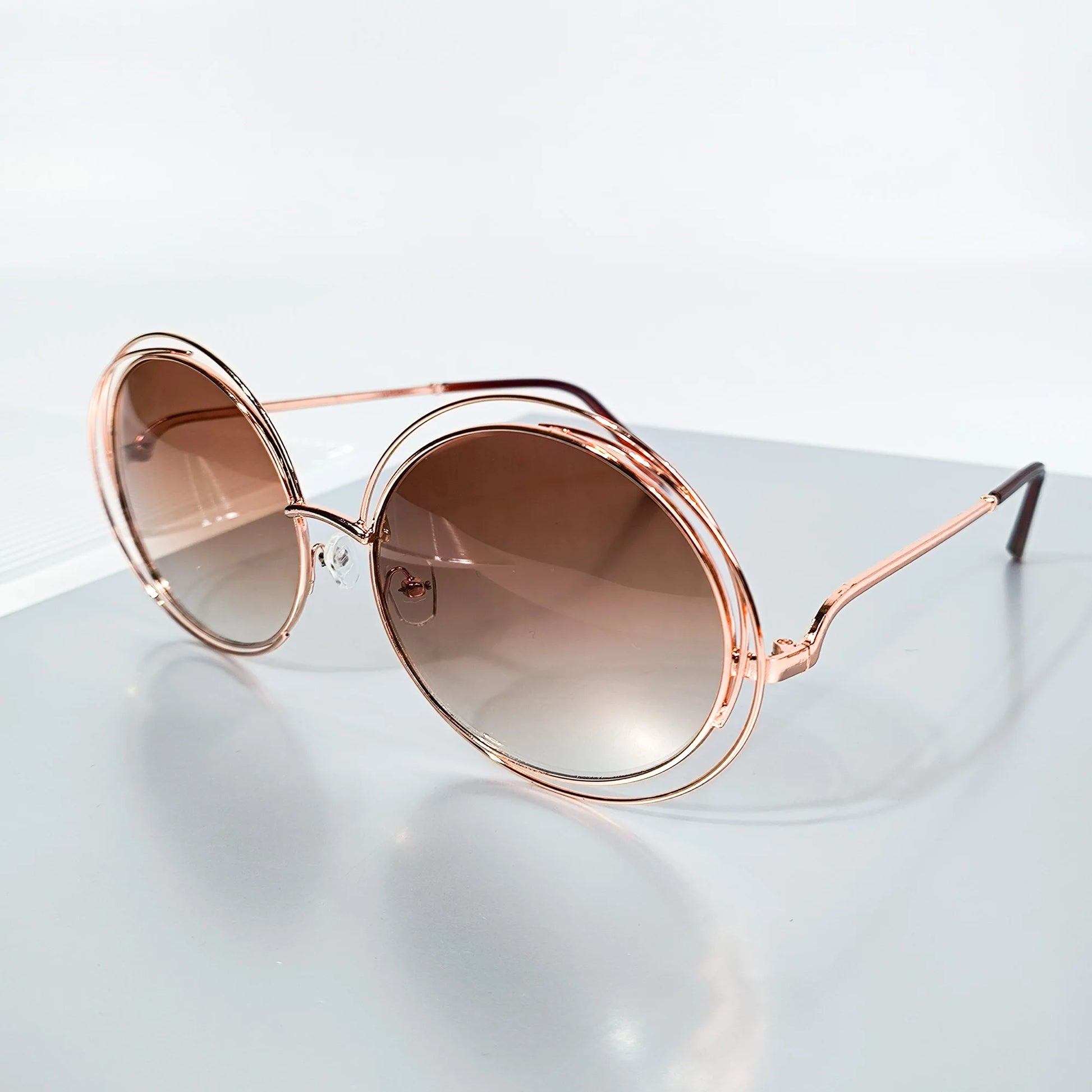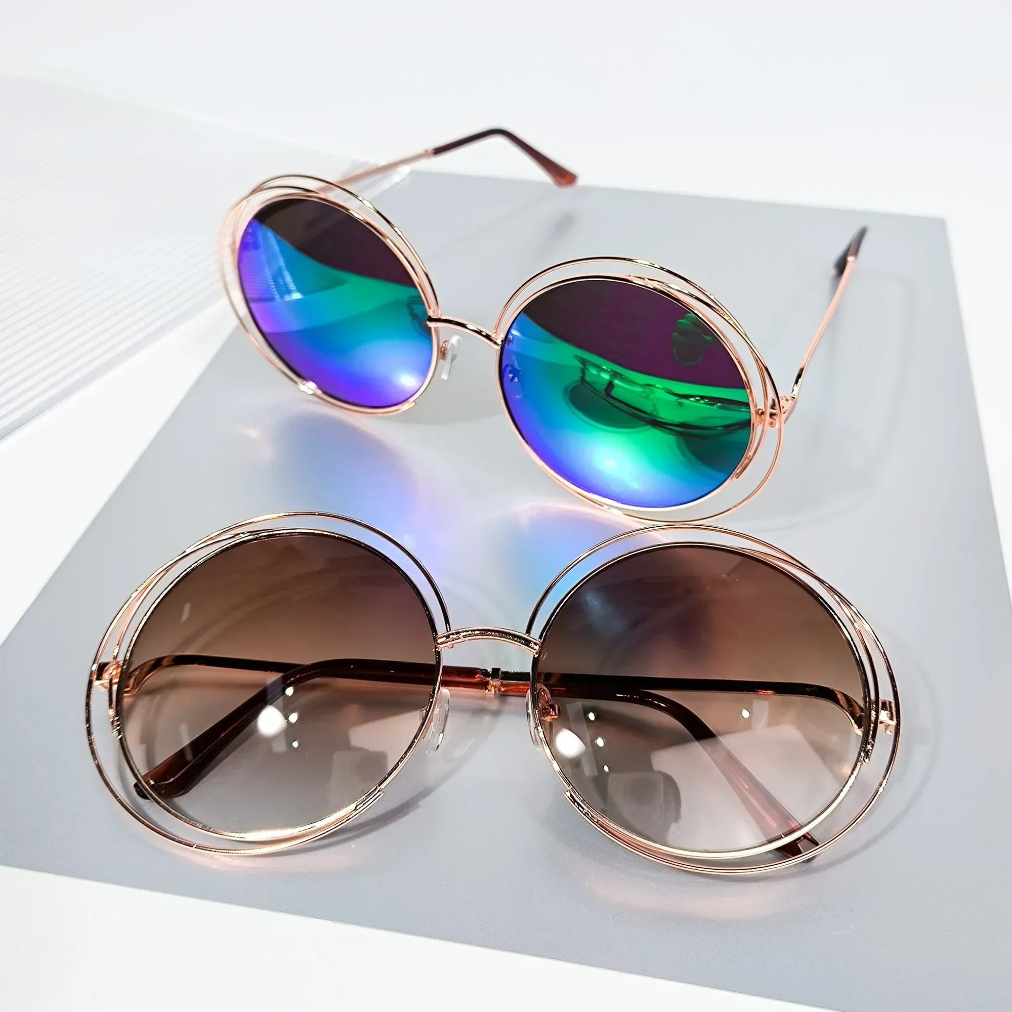 Lunettes rondes surdimensionnées en métal pour femmes, avec verres dégradés, Design rétro élégant, fêtes et événements, accessoires