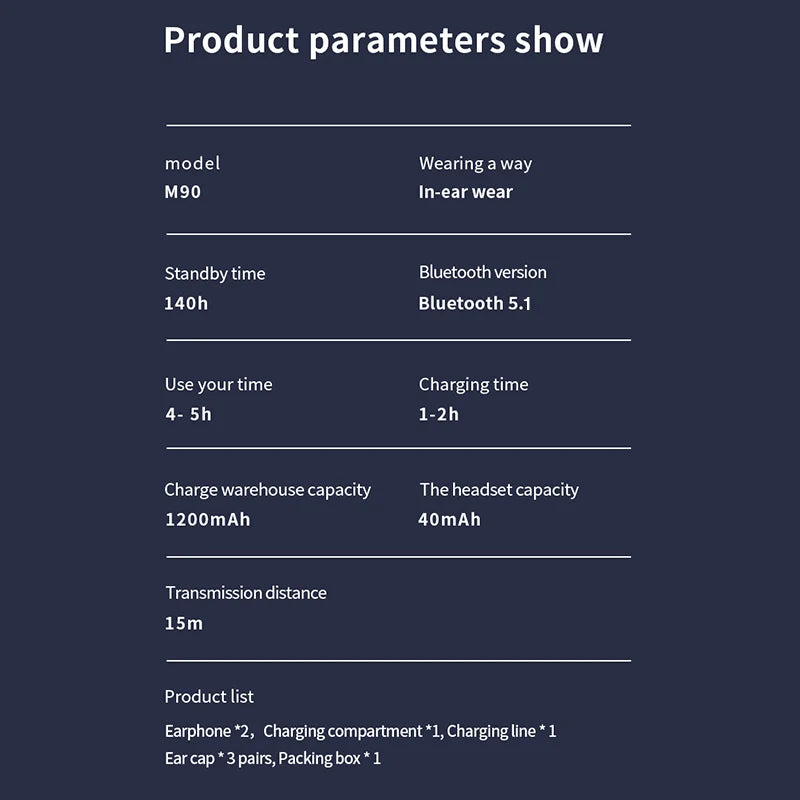 M90 casque sans fil TWS Bluetooth contrôle tactile écouteurs Sport écouteurs Hifi stéréo casque de jeu avec micro pour smartphone
