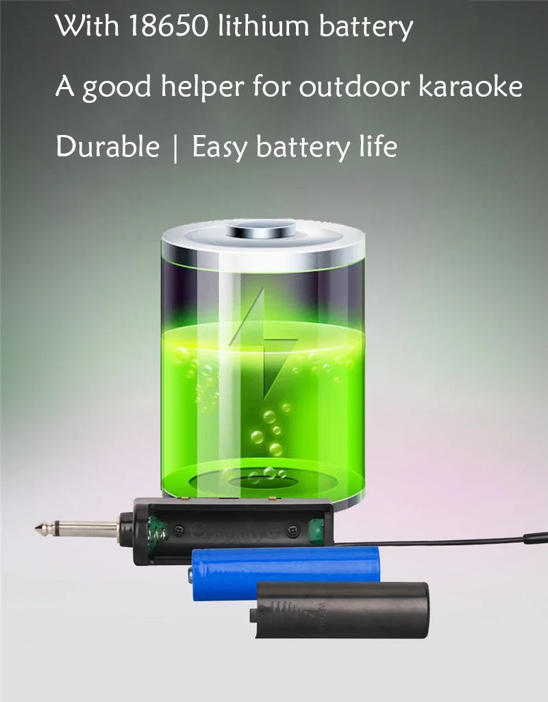 * Using the UHF (Ultra High Frequency) frequency band, the wireless microphone has the advantage of strong anti-interference ability.