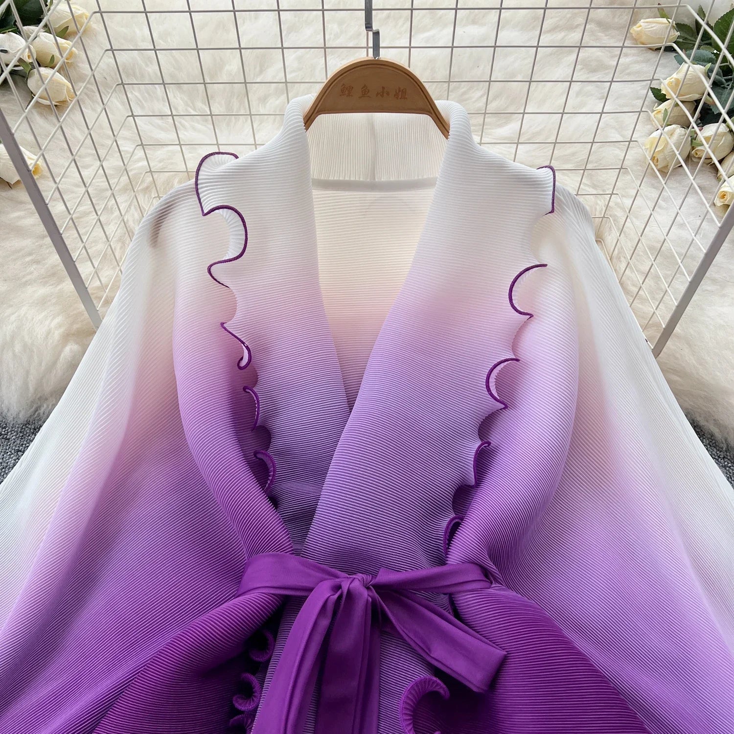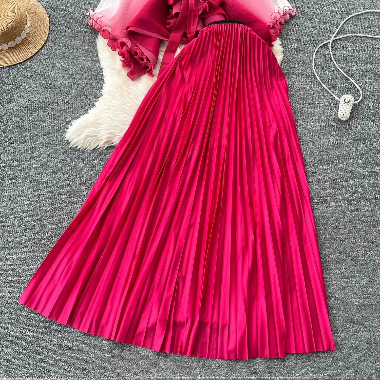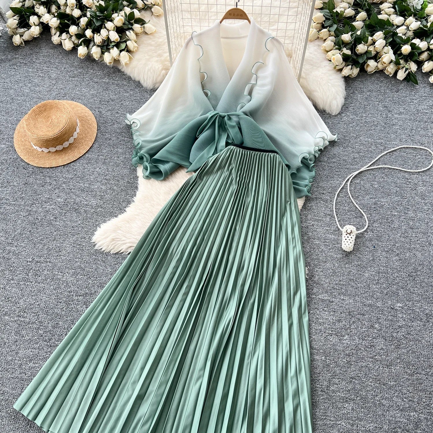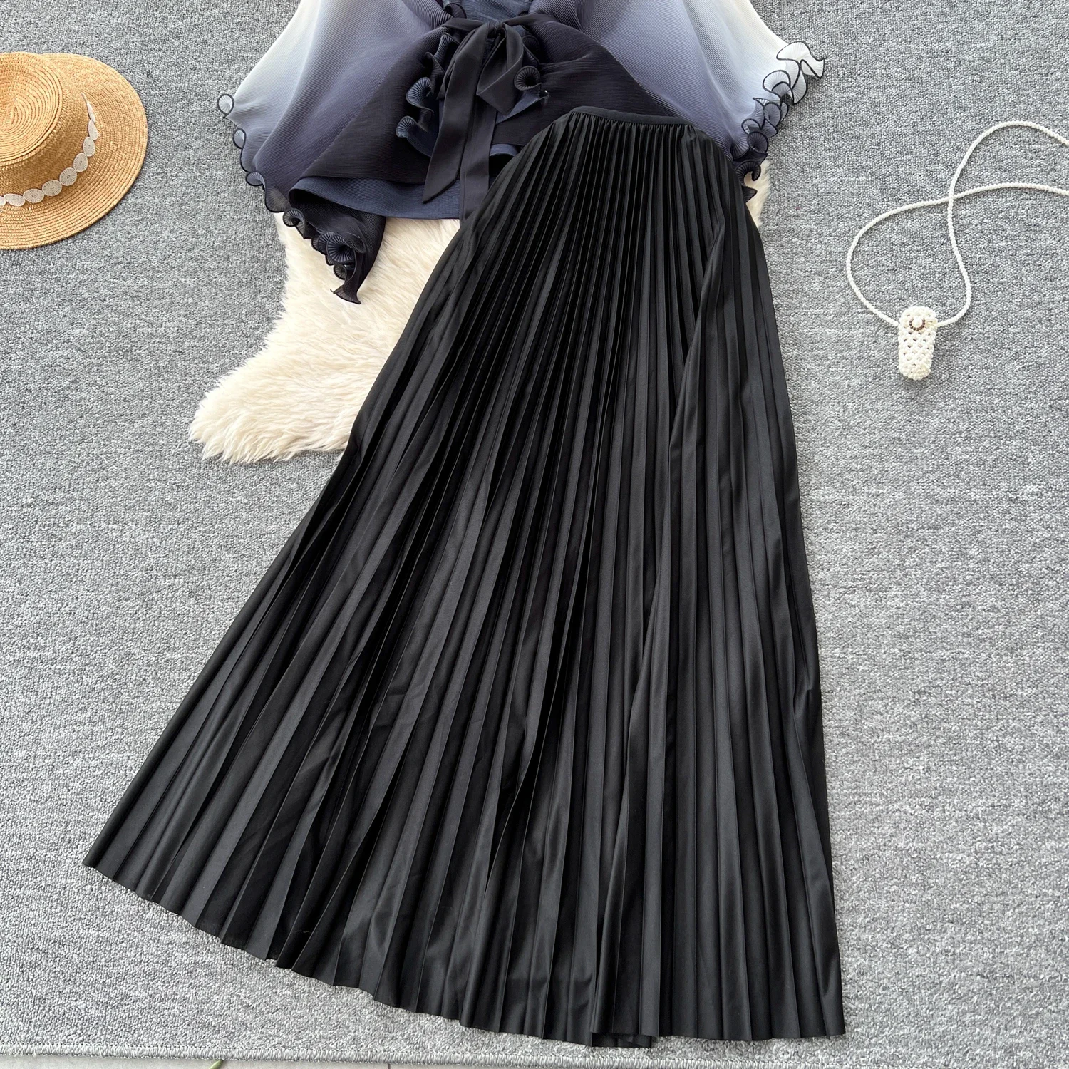 Miyake pli changement progressif couleur bord ondulé costume soleil jupe plissée à la mode et élégant deux pièces ensembles tenues pour femmes
