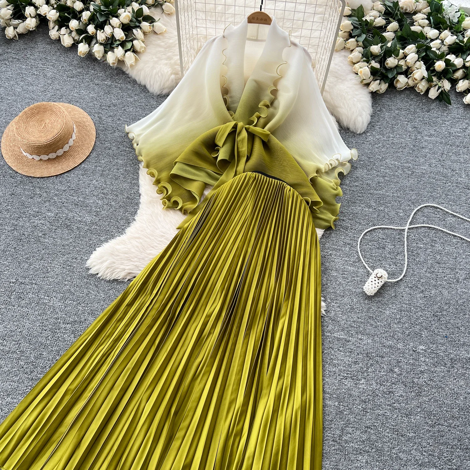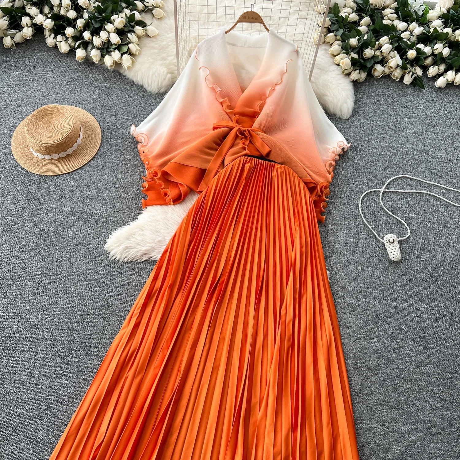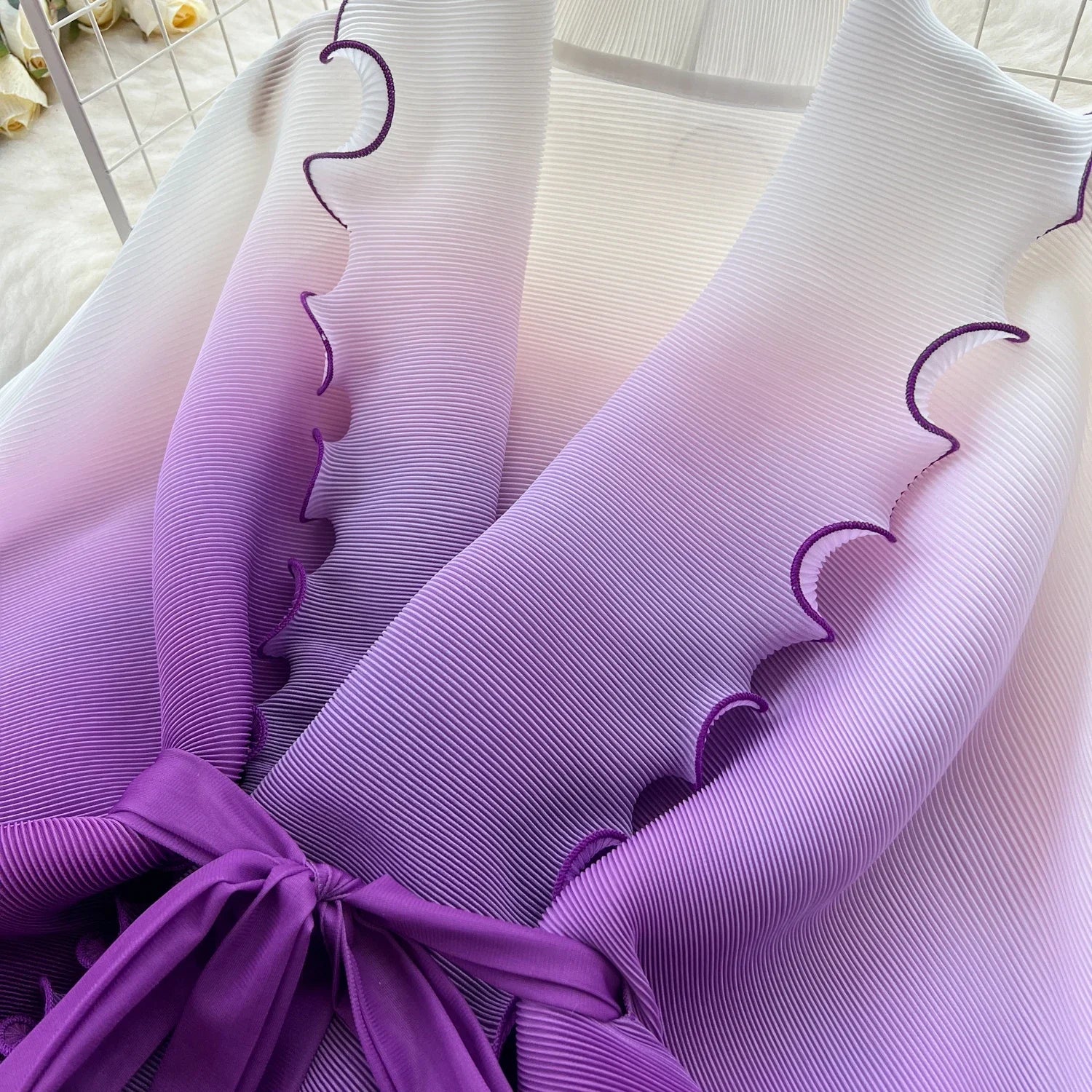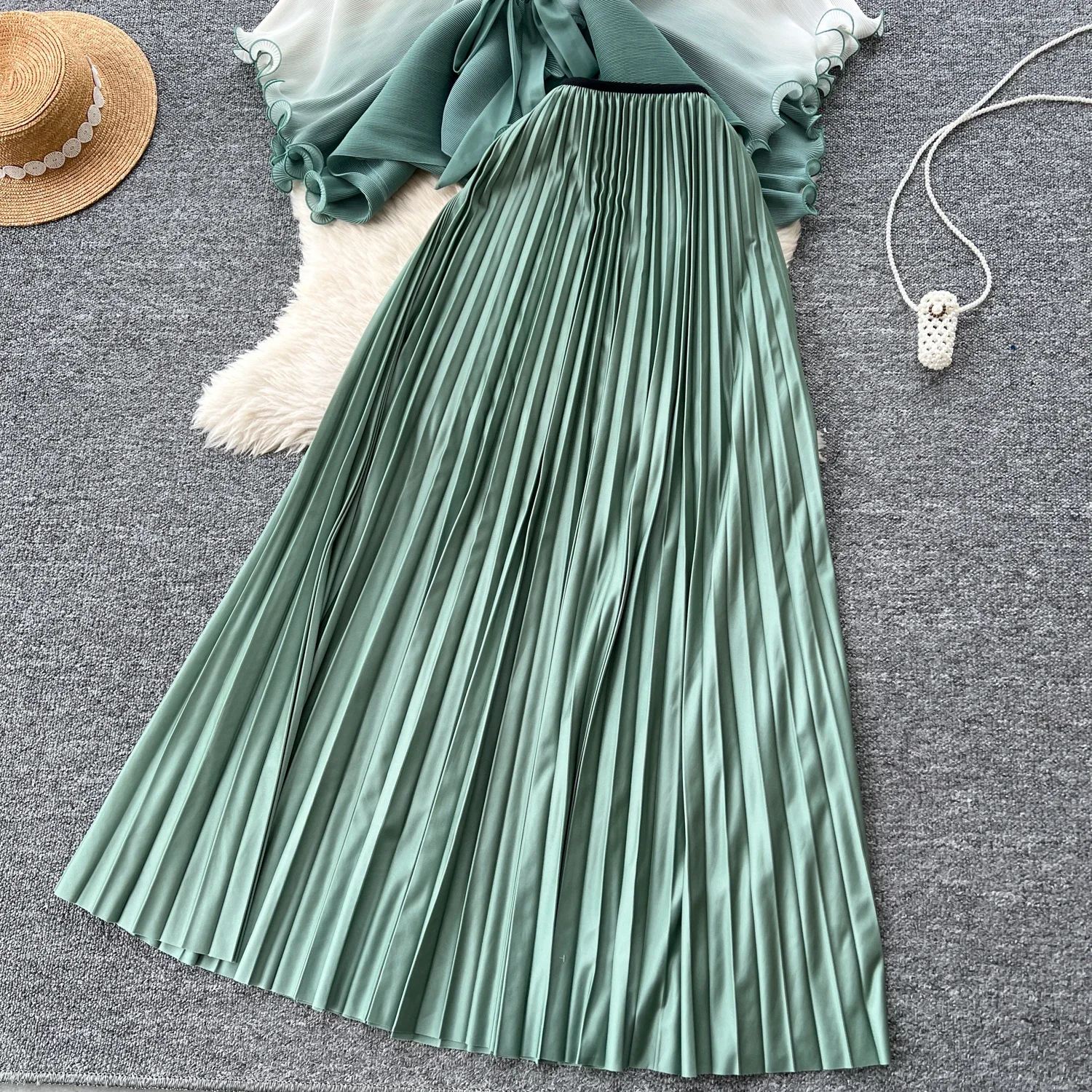 Miyake pli changement progressif couleur bord ondulé costume soleil jupe plissée à la mode et élégant deux pièces ensembles tenues pour femmes
