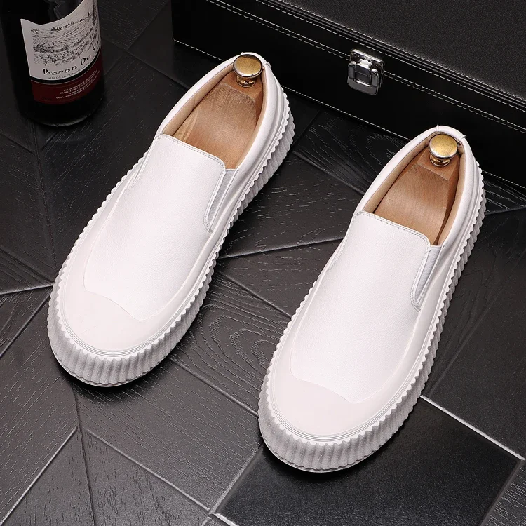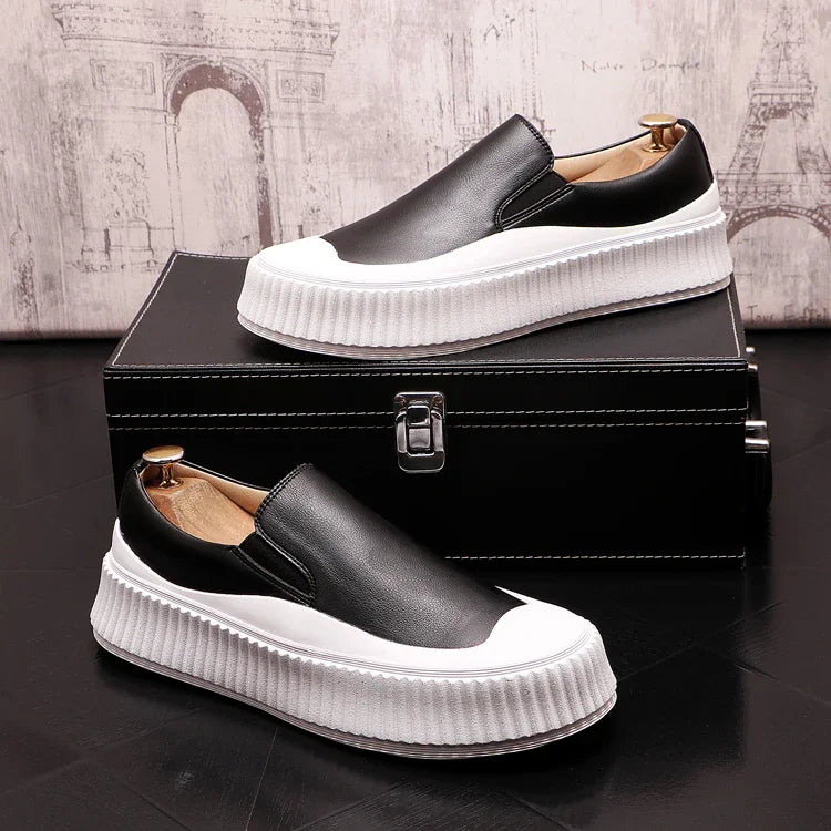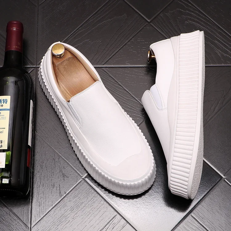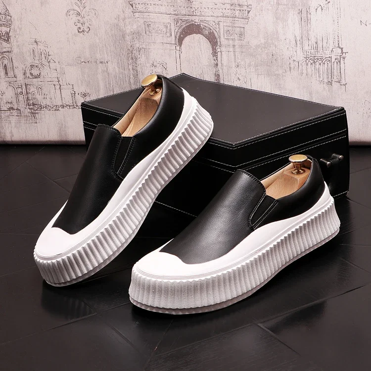 Mocassins en cuir à plateforme épaisse pour hommes, chaussures décontractées, chaussures de planche plates rehaussantes, nouveau, 2025