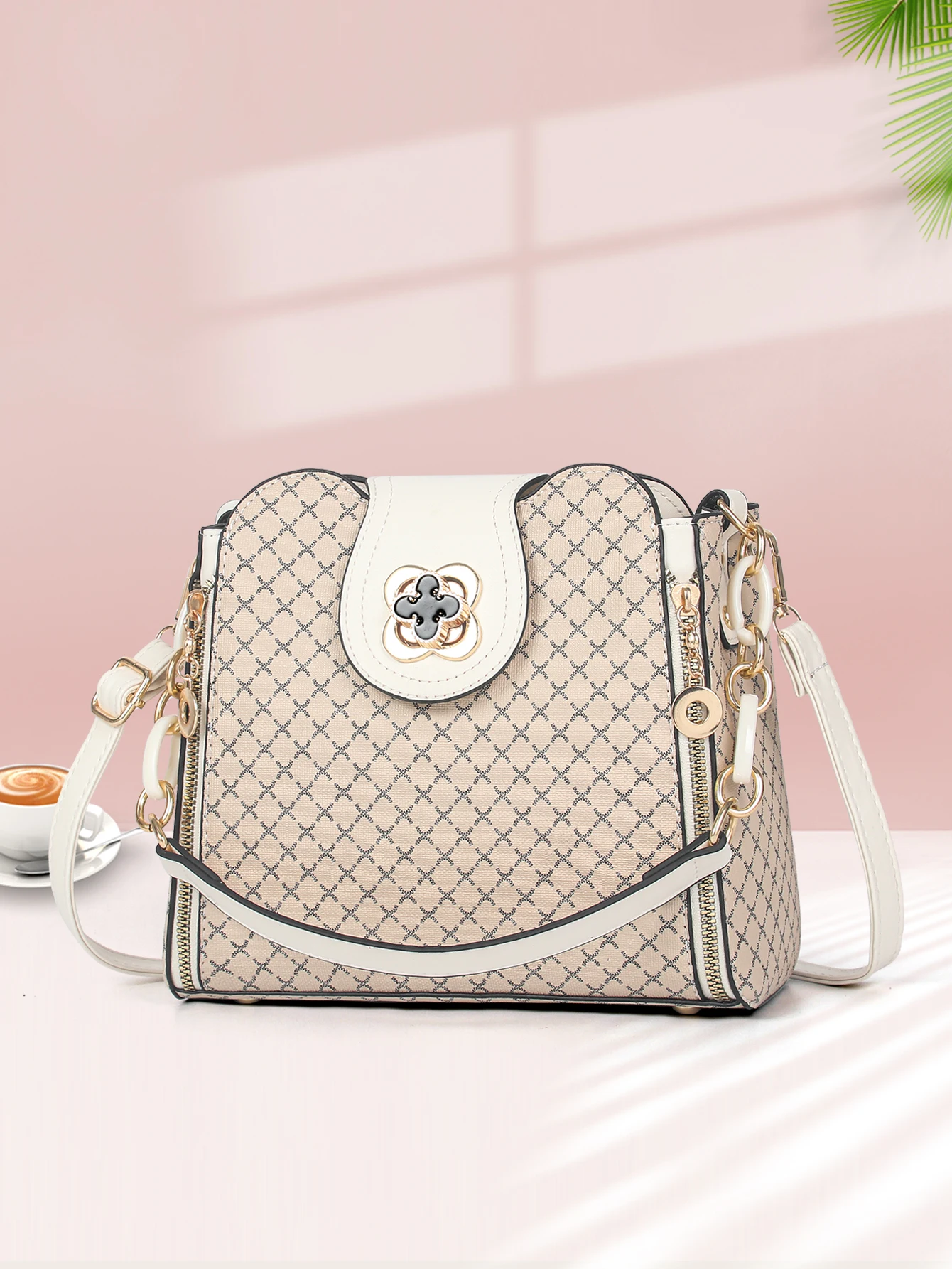 Ce sac à bandoulière présente un design luxueux avec sa forme de seau et son imprimé rabattable, parfait pour ajouter une touche d'élégance à n'importe quelle tenue.