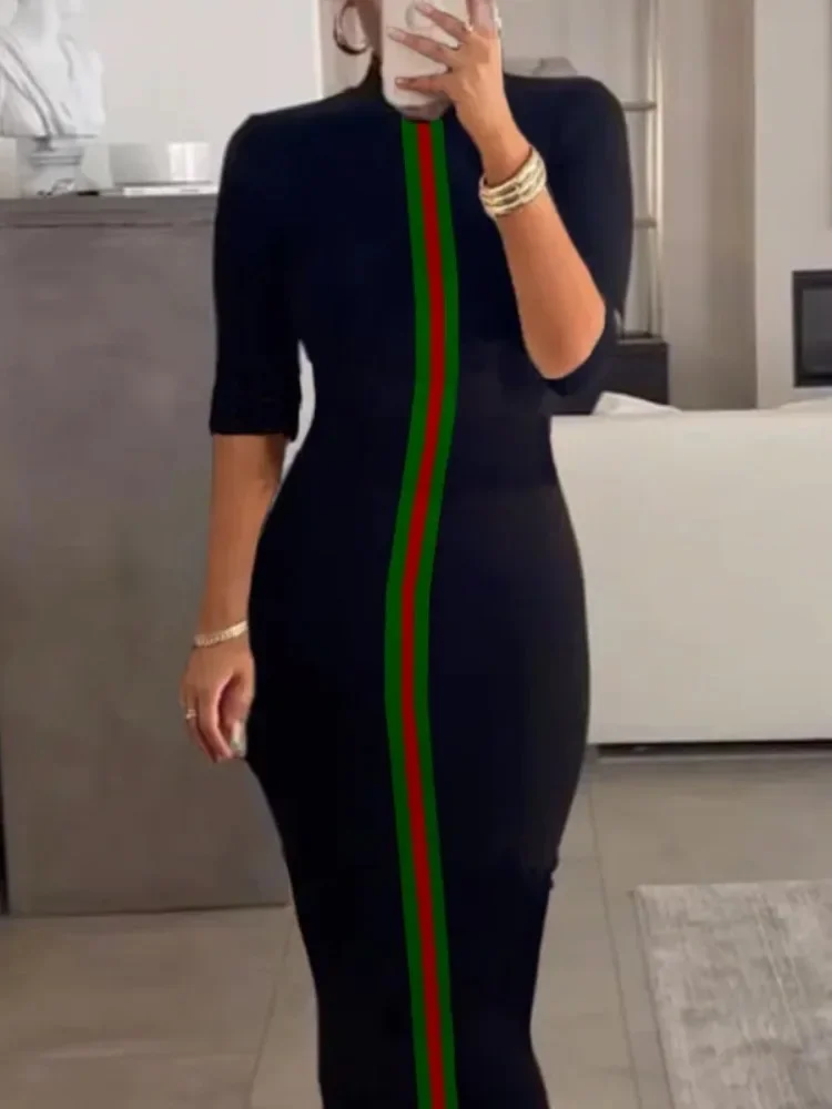 Onecozyday – robe moulante à rayures de couleur contrastée pour femmes, mode col rond, demi-manches, robe de soirée extensible, 2025