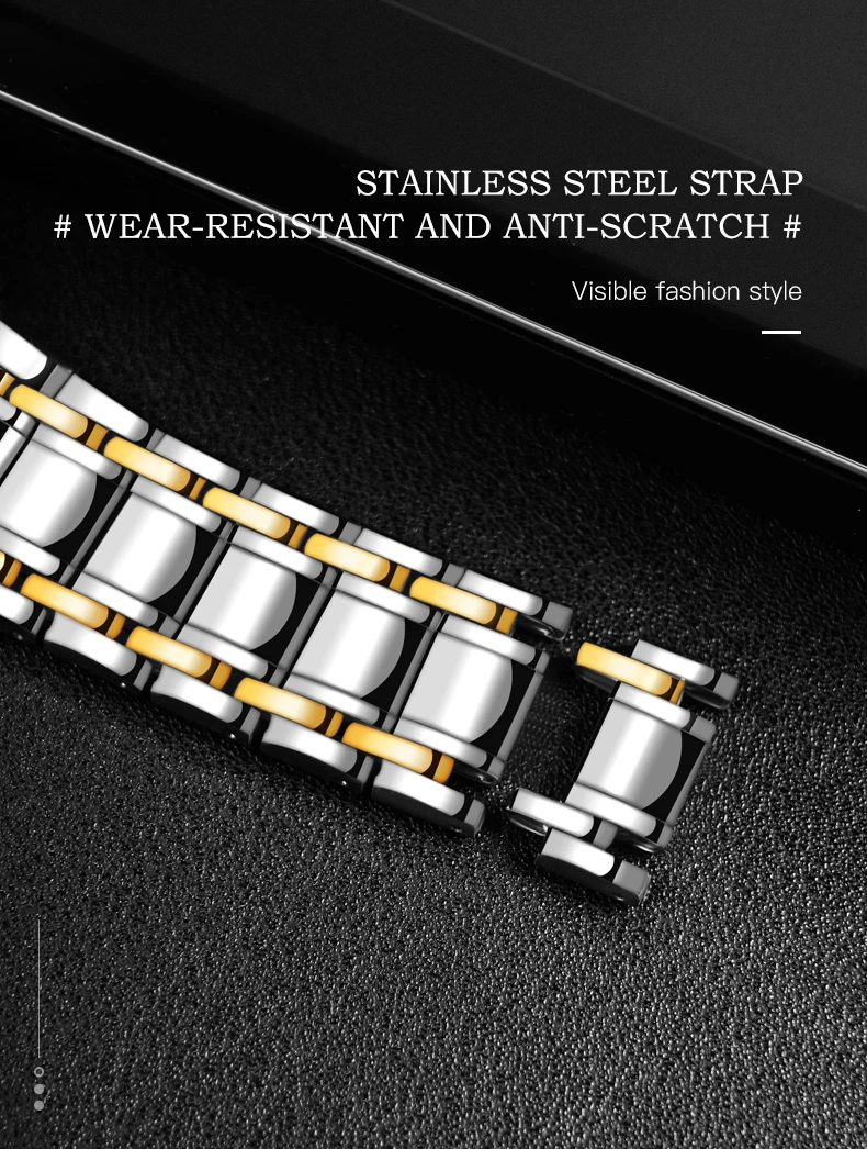• Bracelet en acier inoxydable :Le bracelet en acier inoxydable offre une durabilité et une résistance à la corrosion exceptionnelles, assurant une longue durée de vie à la montre.