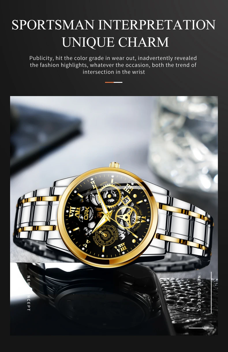 OPK8135-montre pour hommes, bracelet en acier avec lueur nocturne étanche