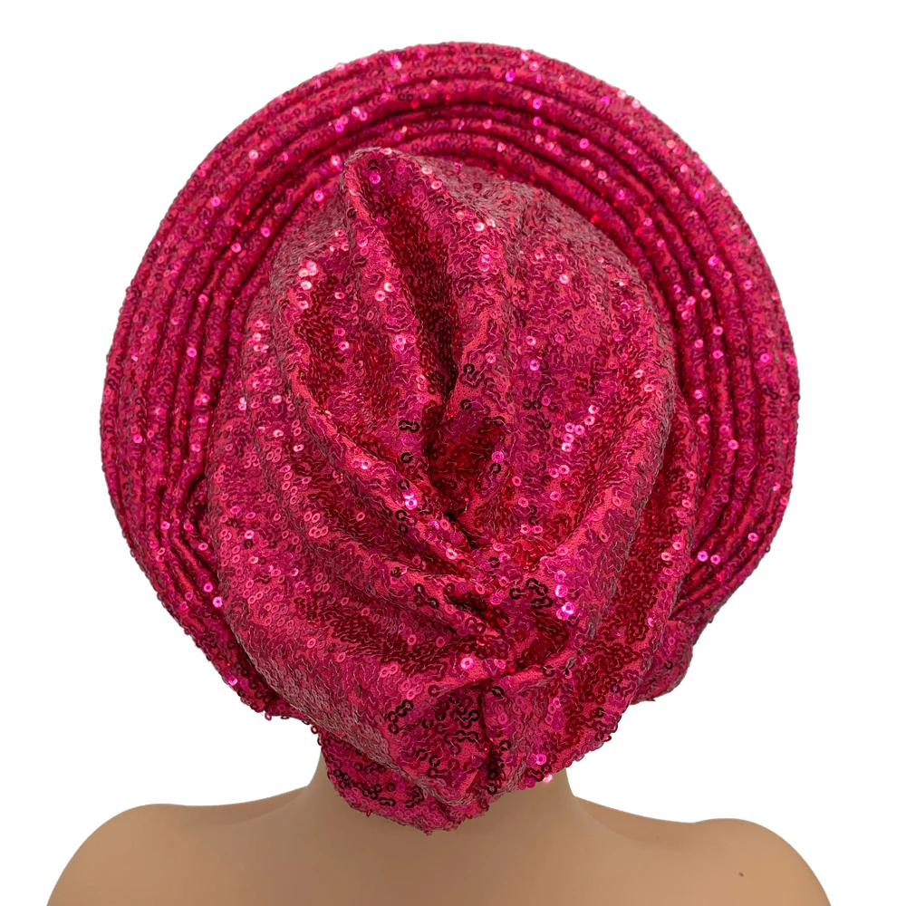Paillettes Autogele Turban casquette pour femmes prêt africain Auto Gele casque Nigeria mariage Geles femme bandeau dame casque