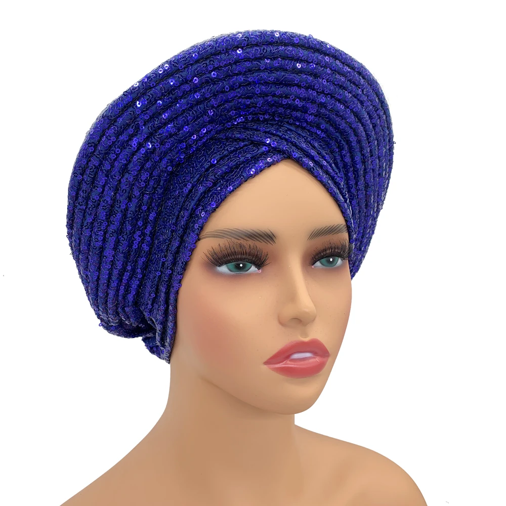 Casquette Turban à paillettes pour femmes, prête à porter, couvre-chef africain Auto Gele Nigeria, mariage Geles, couvre-chef pour femmes, nouvelle collection