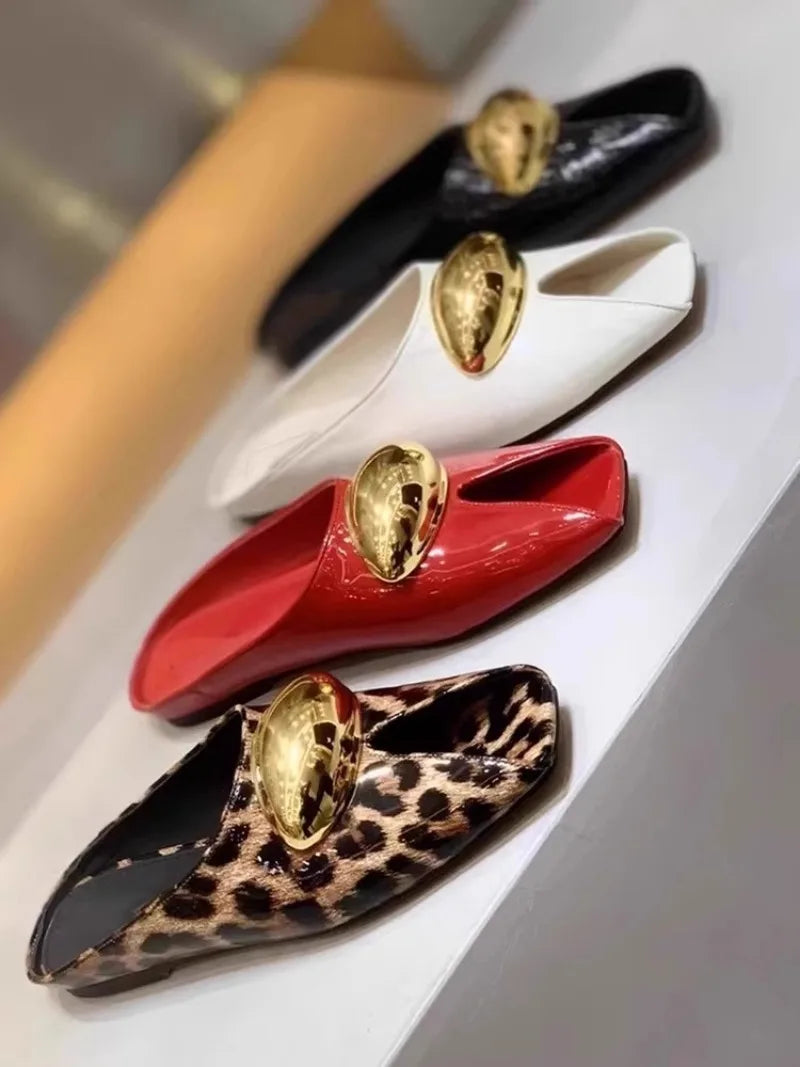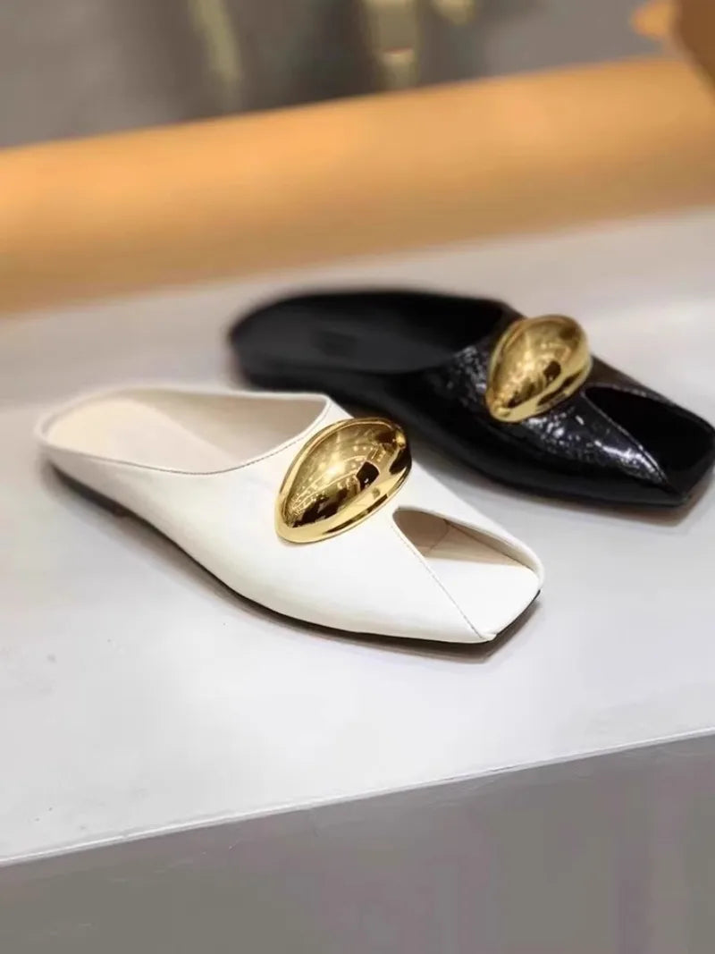 Pantoufles à bouche de poisson avec boucle en métal, chaussures plates à la mode, pantoufles Cool, tendance d'été, nouvelle collection 2025
