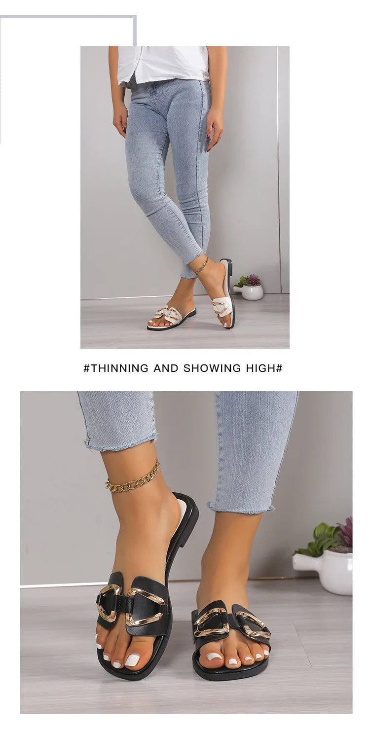Pantoufles de luxe pour femmes, Design à boucle, petit Style d'encens, sandales plates décontractées pour femmes, vêtements externes, diapositives de plage de sable d'été pour femmes