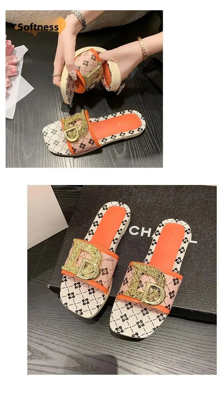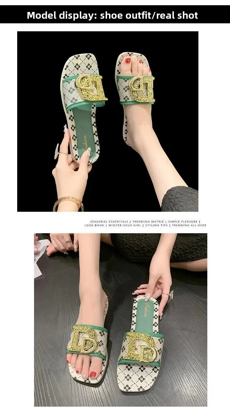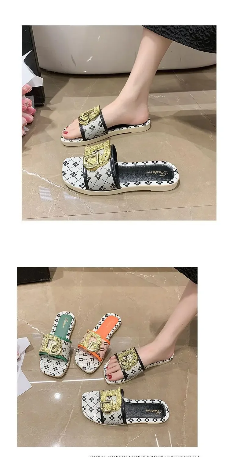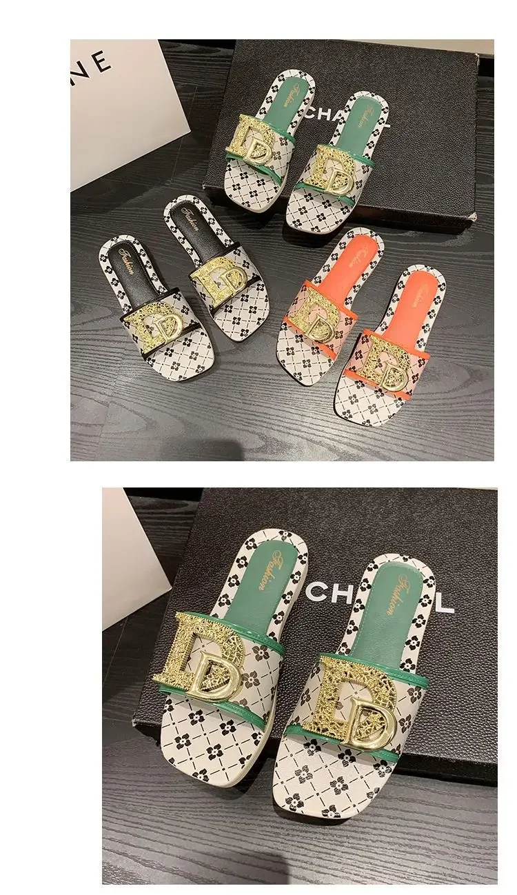 Pantoufles d'été à la mode pour femmes, pantoufles fond souple, antidérapantes, décorées en métal, Style de loisirs, matériau PVC