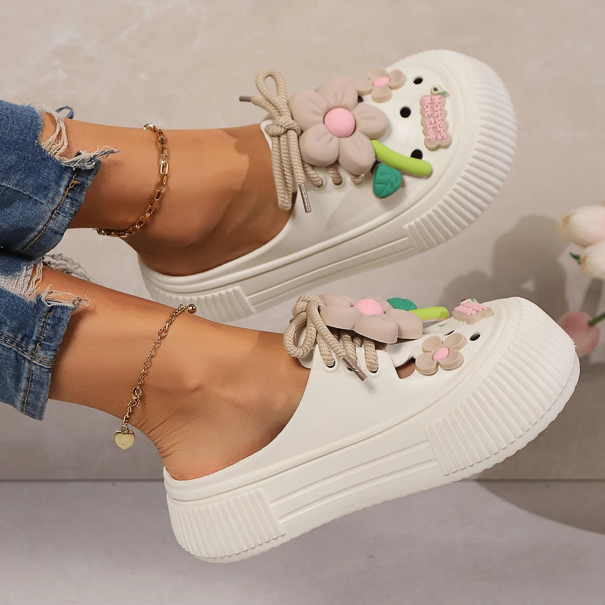Pantoufles d'été pour femmes, jolies sandales à plateforme décoratives, sabots d'extérieur décontractés, sandales de plage, diapositives antidérapantes, chaussures d'intérieur et de maison 35-42