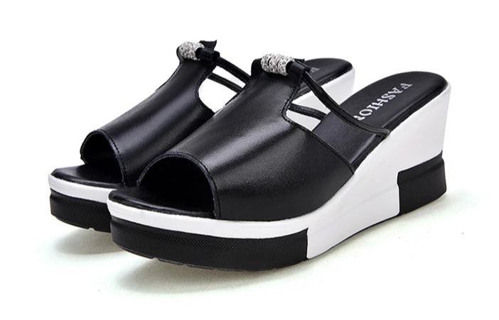 Pantoufles d'été pour femmes, tongs à fond épais, sandales décontractées à talons hauts pour dames