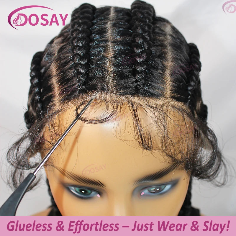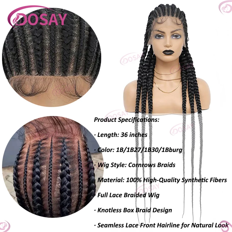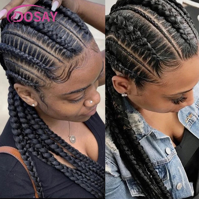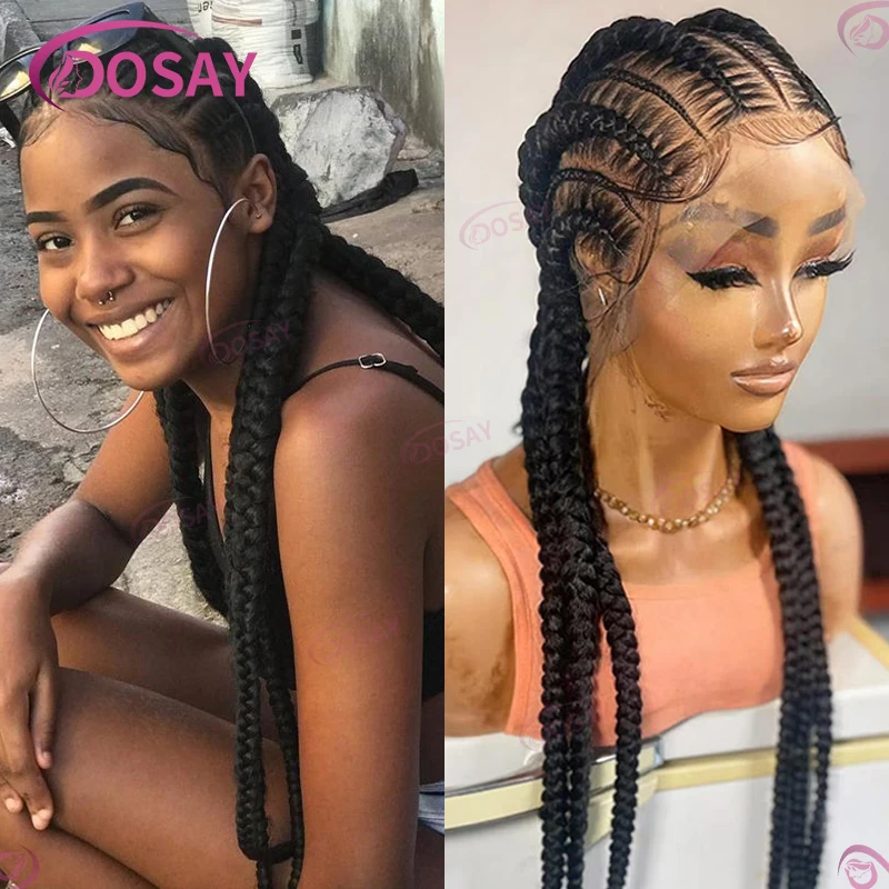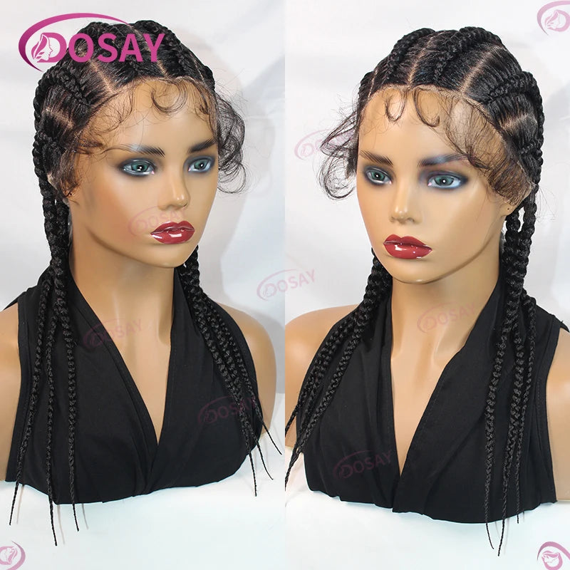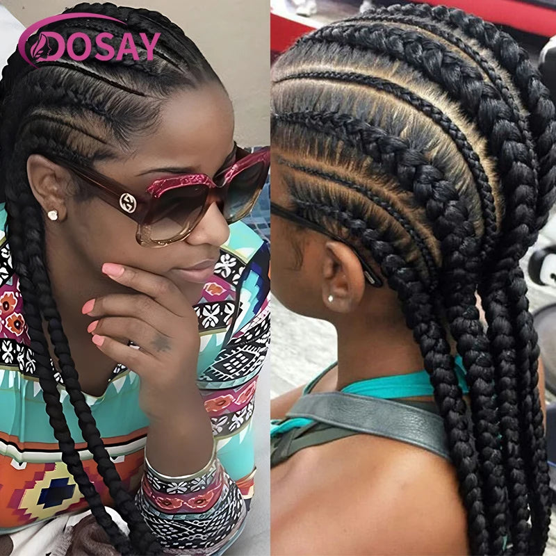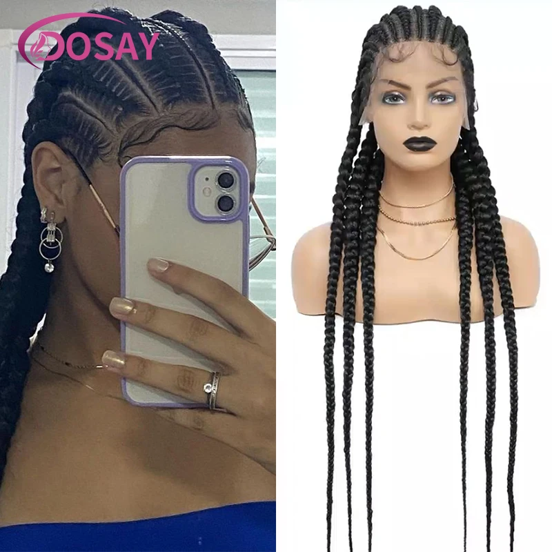 Perruques tressées sans colle synthétique pleine dentelle avant perruque tresse africaine sans noeud boîte tresses 20 "femmes perruques pour femmes perruques tressées