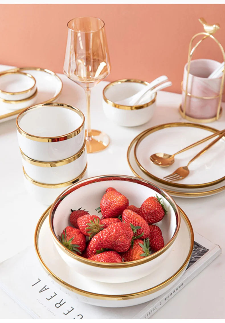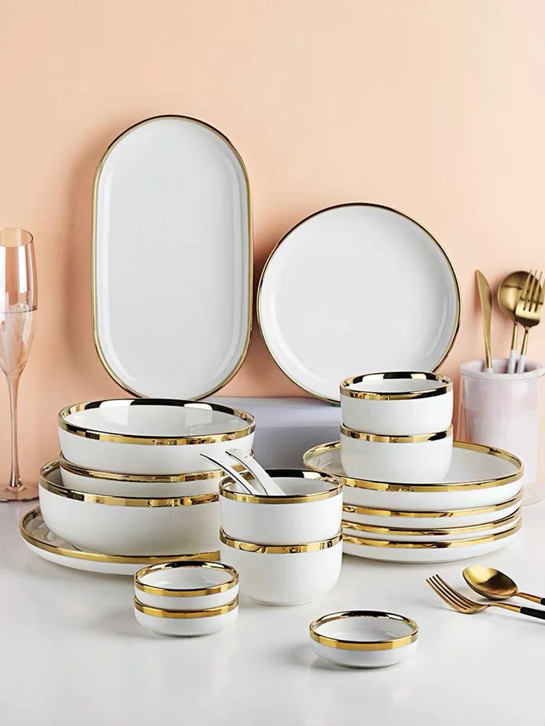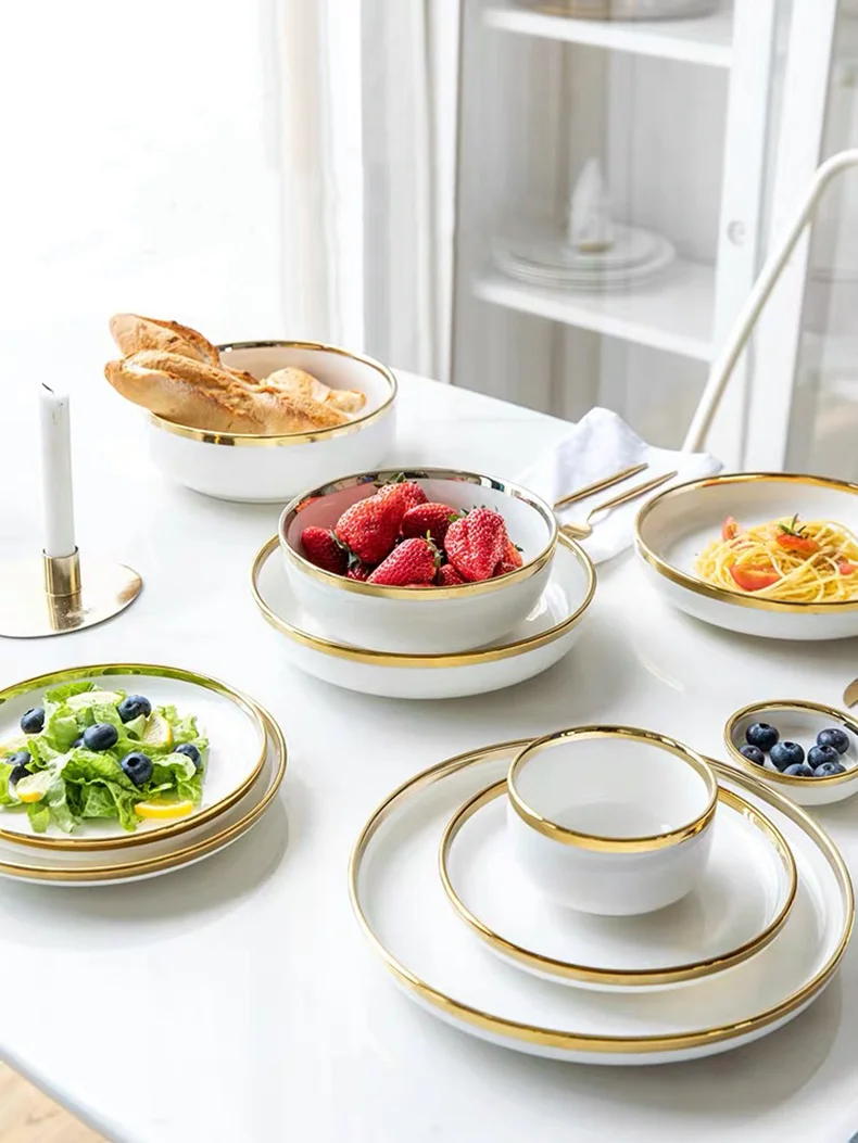 Phnom Penh-Assiettes et bols en porcelaine blanche, ensemble de nourriture, vaisselle, bol à soupe à salade, service britannique