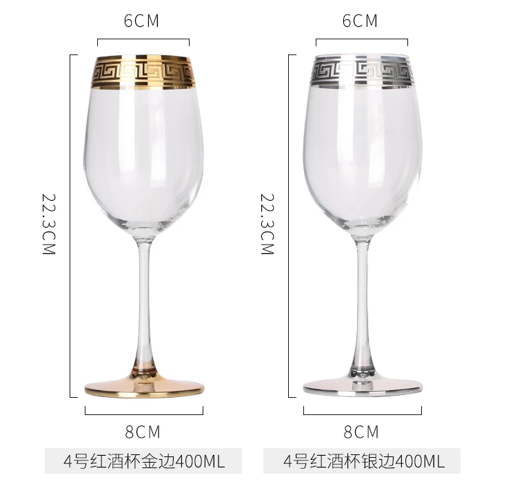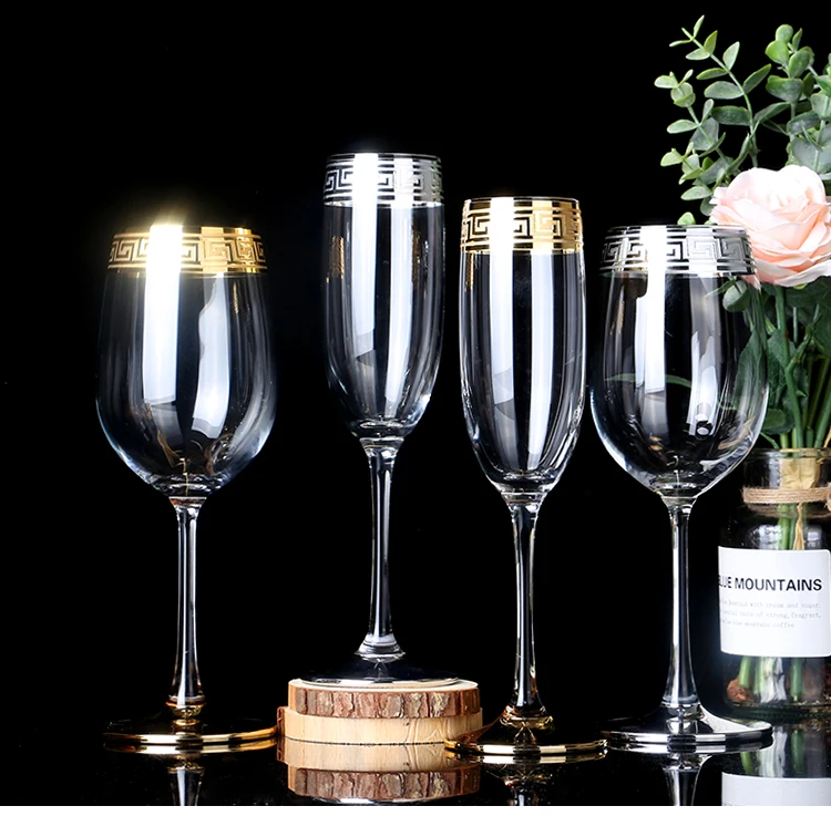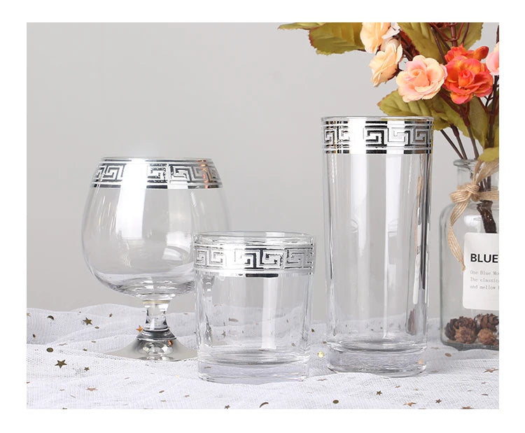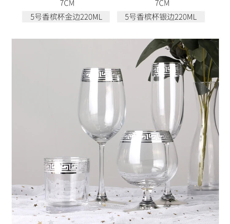 Phnom Penh-Verre Européen à Bord Argenté, Grand Clip Étranger, Vin Rouge, Brandy, Champagne, Table à Manger, Verre à Eau Domestique