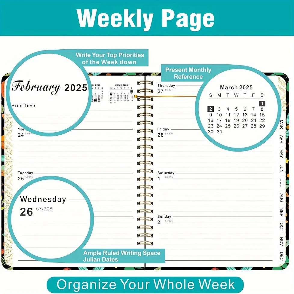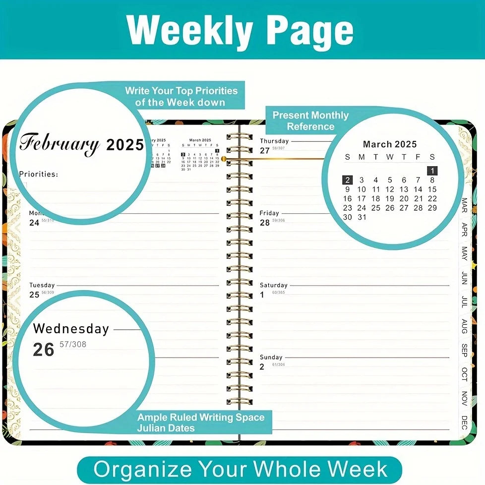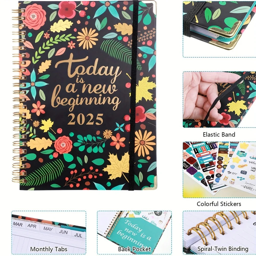 Planificateur 2025 Calendrier hebdomadaire et mensuel 2025 de janvier à décembre A5 (6,2" x 8,5") Plan de travail accaden de 12 mois Etiquettesmic