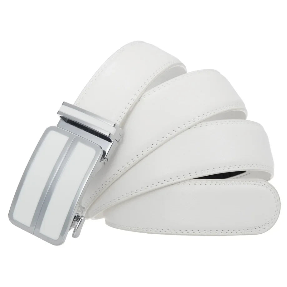 Plyesxale Black Khaki Blue Red White Leather Belt For Men Good Quality Mens Belts Luxury Automatic Buckle Waist Strap Male B1049