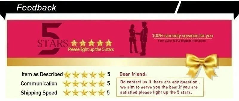Vos commentaires positifs sont la clé du succès de notre entreprise.Nous vous demandons gentiment s'il vous plaît
