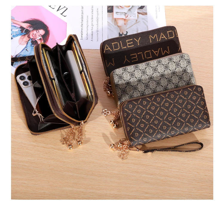Portefeuille long simple de grande capacité, Sac à fermeture éclair en simili cuir, Sac d'embrayage multifonctionnel décontracté