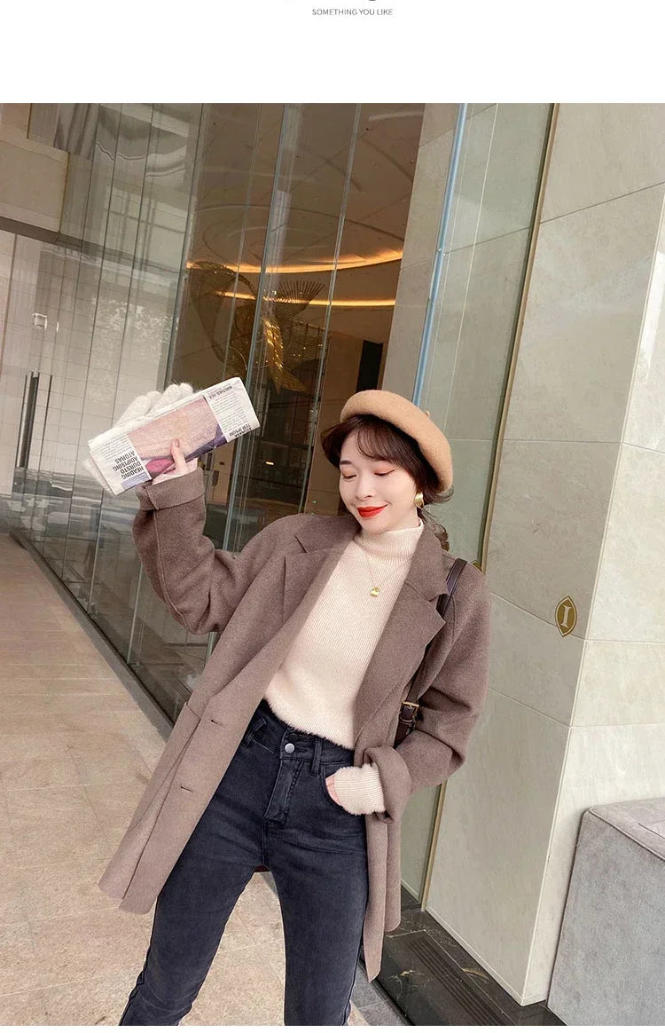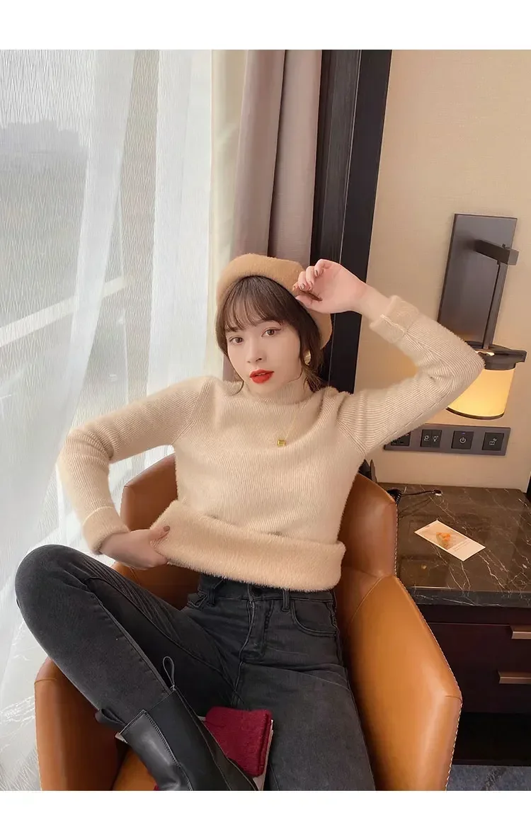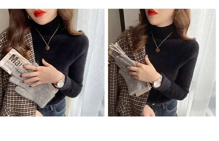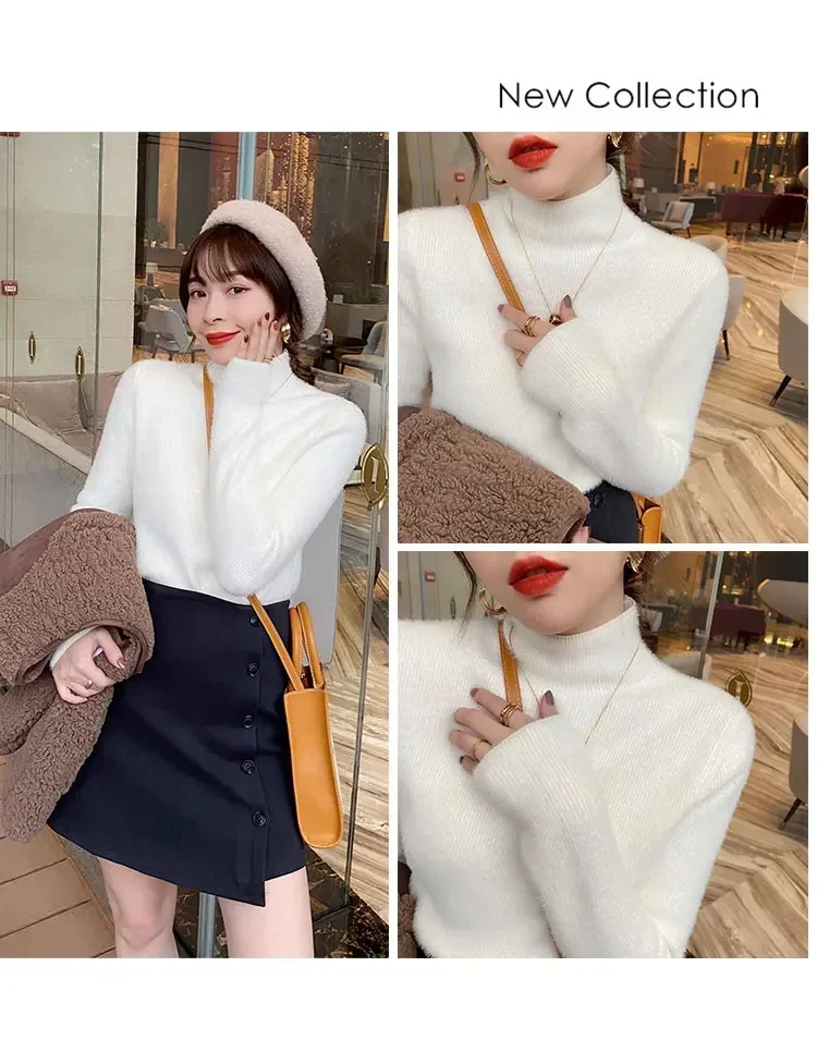 Pull à col roulé à manches longues pour femmes, optique, mince, doux, chaud, côtelé, hiver, automne, 2024
