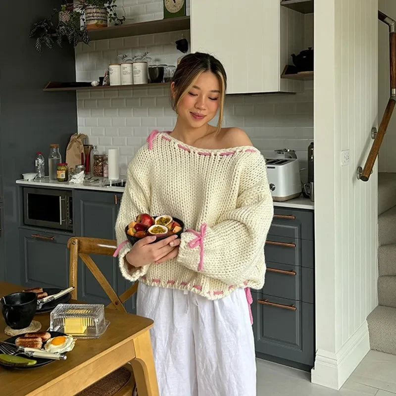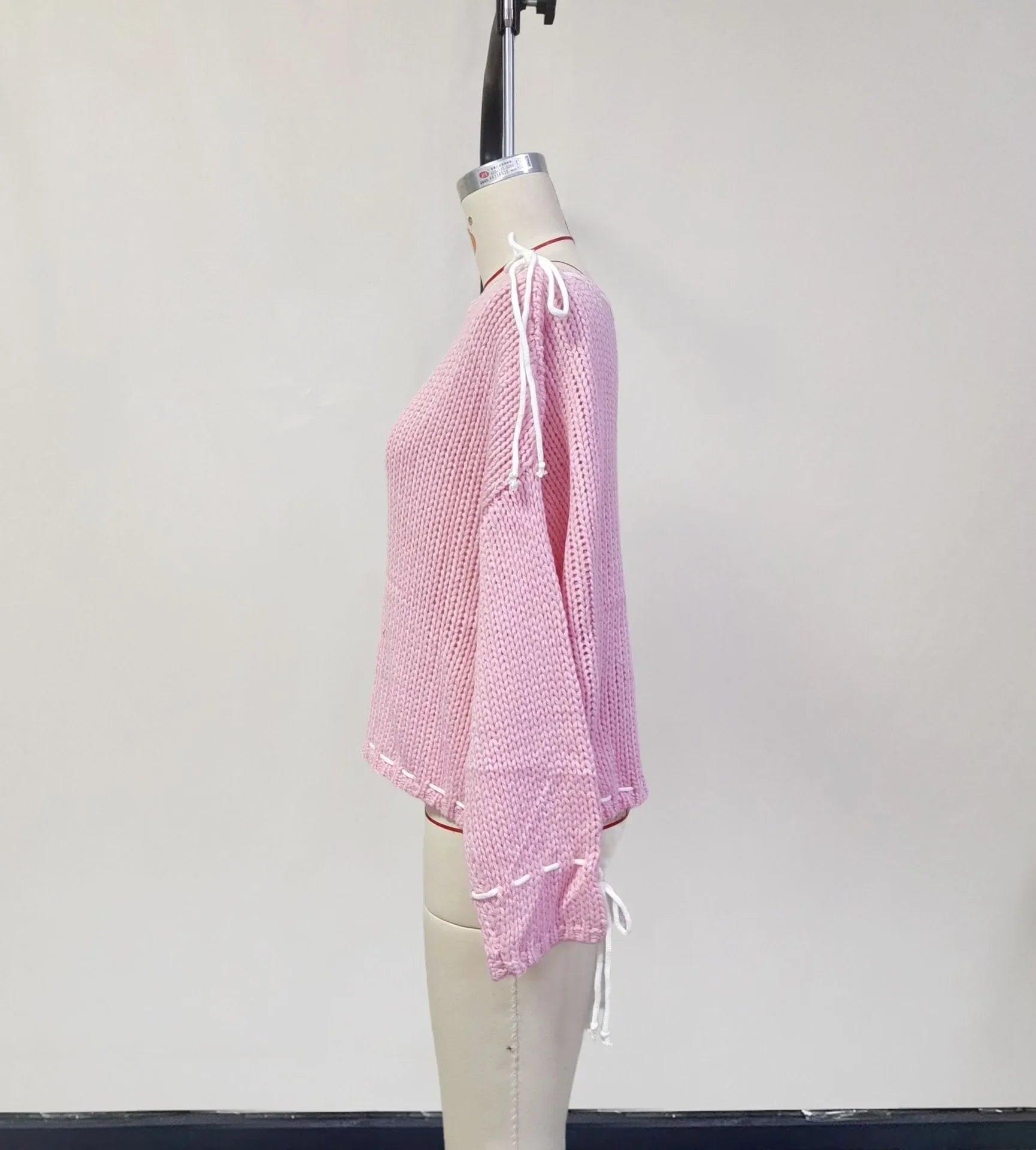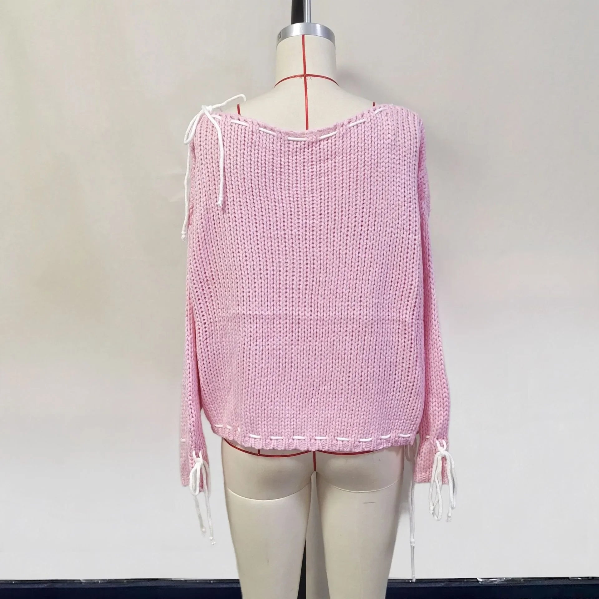 Pull tricoté à lacets pour femme, pull à manches longues, ample, à la mode, Y2K, nouvelle collection automne hiver 2024
