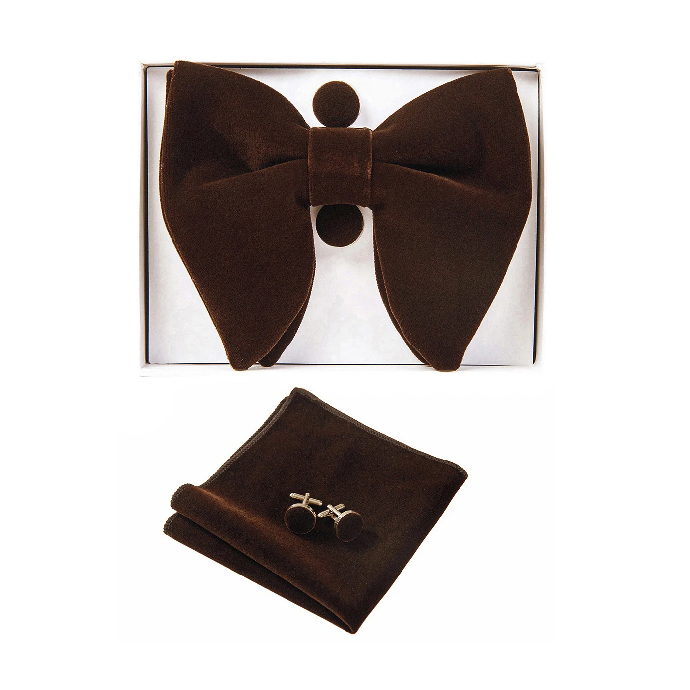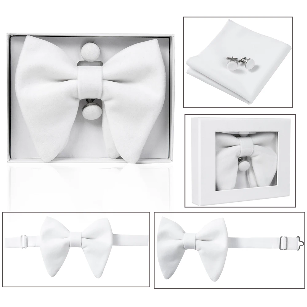 Ricnais velours grand noeud papillon hommes noeuds papillon poche carré boutons de manchette ensemble solide rouge bleu mouchoir cravate pour homme cadeau de mariage