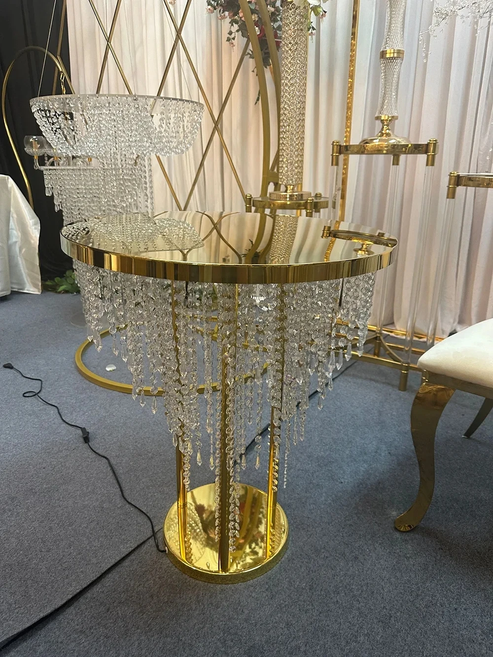 Nom du produit : table à gâteau avec rideau en perles de cristal (peut être branché).