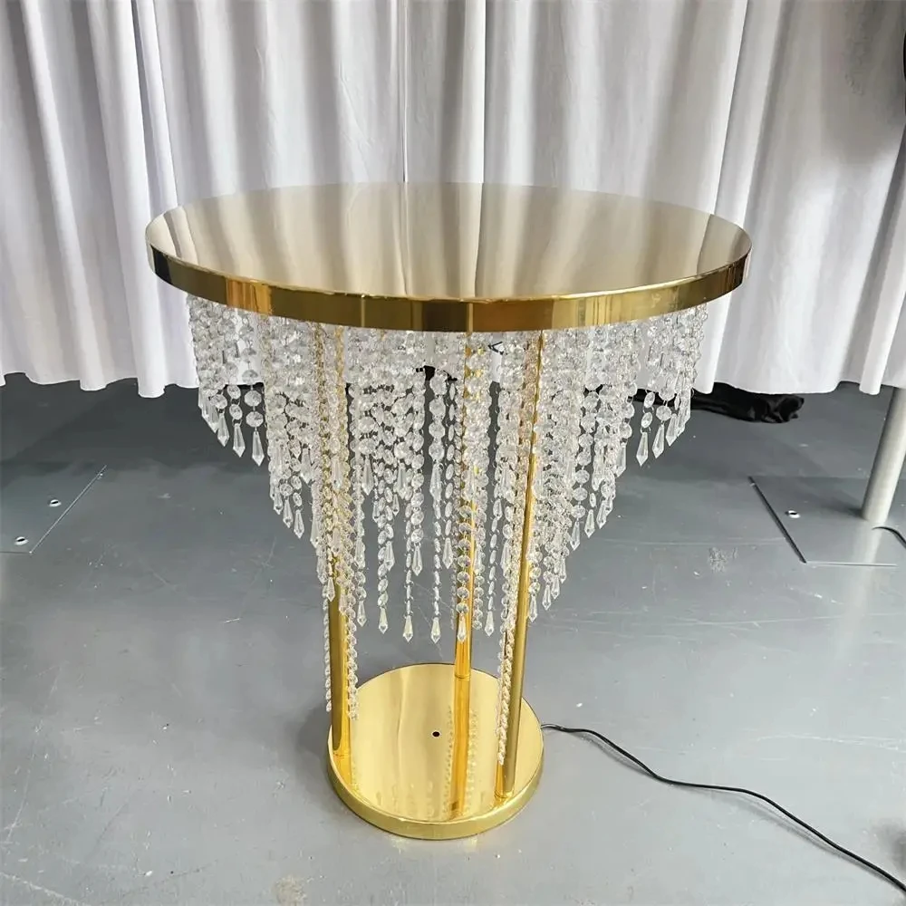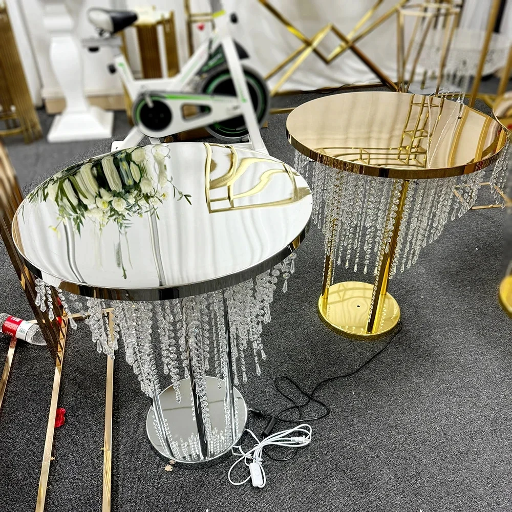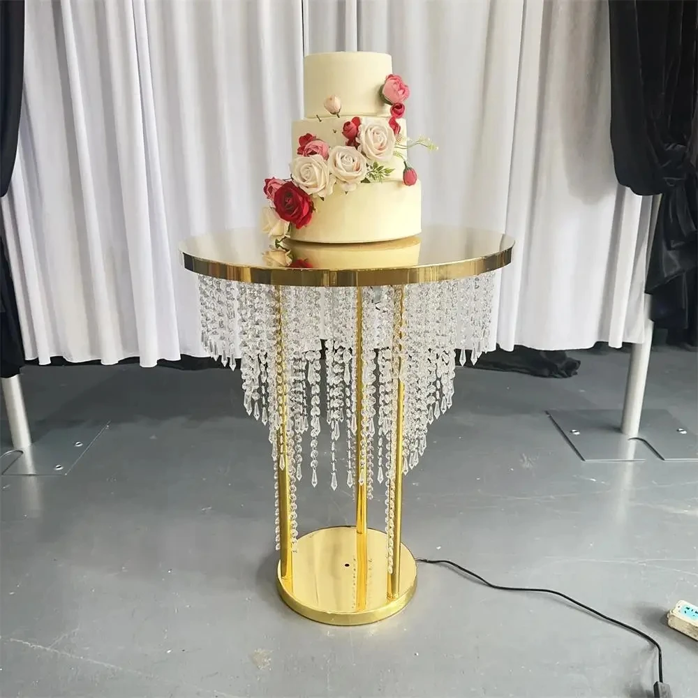 Rideau de perles de cristal, Table à gâteau, décoration de mariage, Table en métal avec éclairage, Table à gâteau en cristal de mariage