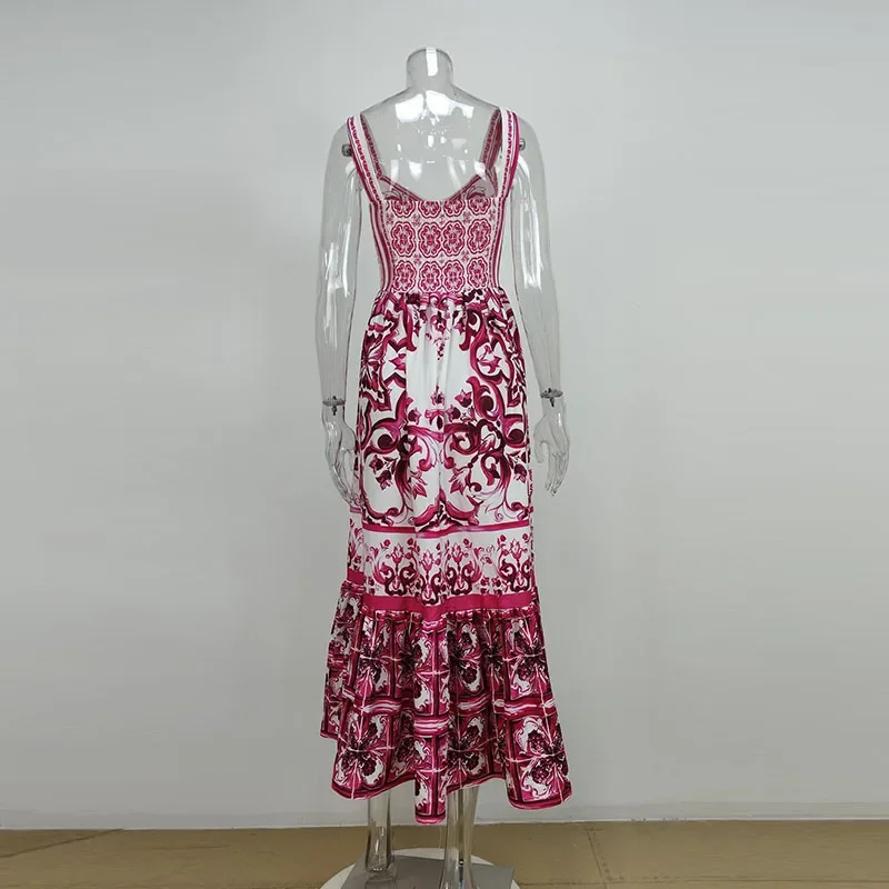 Robe d'été plissée pour femmes, Sexy, col en V, taille haute, mode, imprimé Floral, sans manches, robe de vacances, nouvelle collection