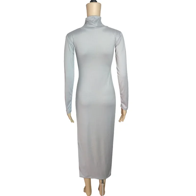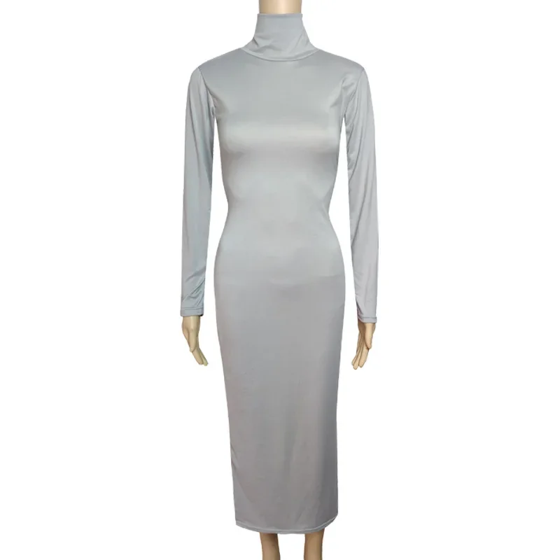 S / Robe à col roulé B105 en fibres chimiques gris clair 14:173#B105 turtleneck chemical fiber dress light gray;5:100014064