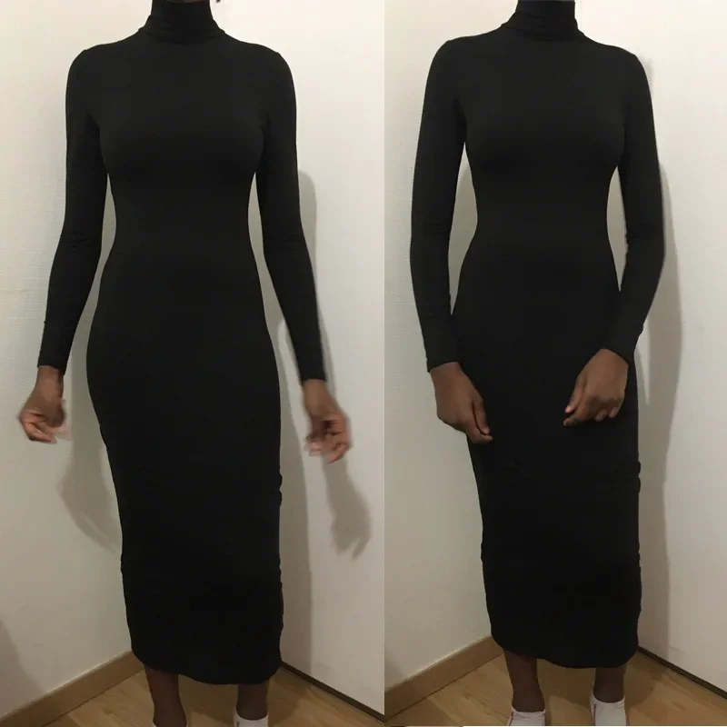 XXL / Robe col roulé B105 en fibres chimiques Noir 14:10#B105 turtleneck chemical fiber dress Black;5:4182