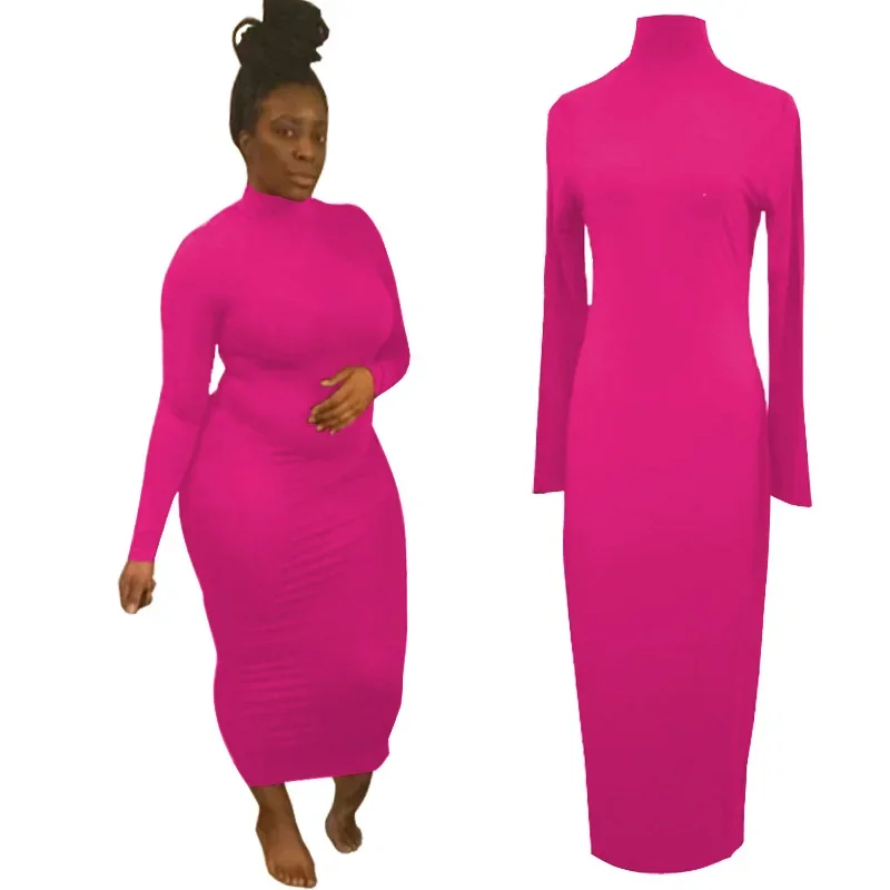 XXL / Robe longue col roulé B105 en fibres chimiques vin rouge 14:496#B105 turtleneck chemical fiber long dress wine red;5:4182
