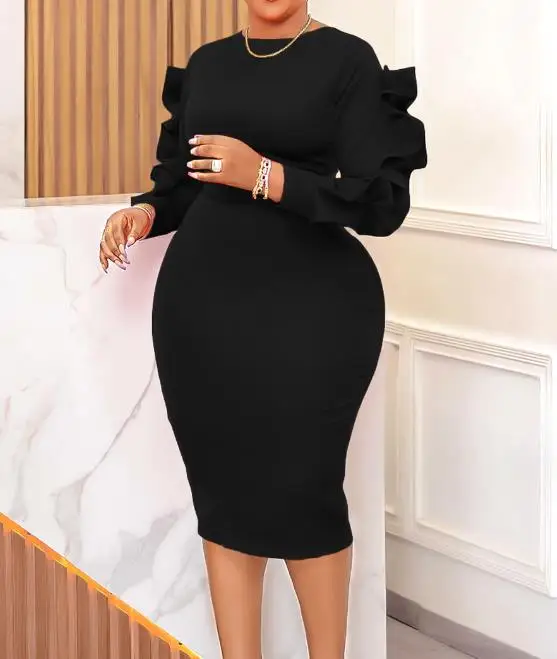Robe pour femmes, mode automne 2023, tempérament de fête, élégante, bureau, manches longues, col rond, robes portefeuilles