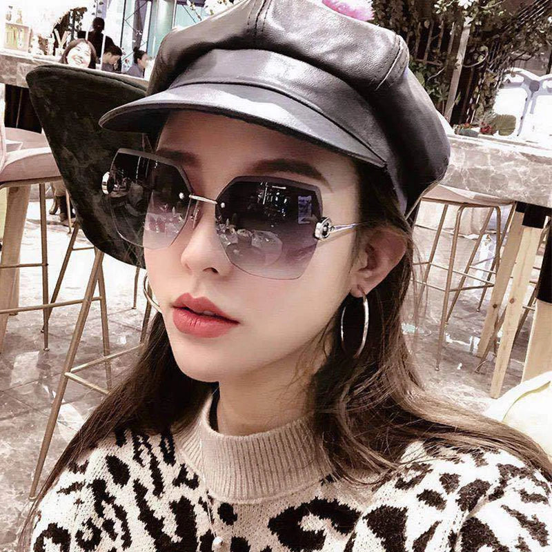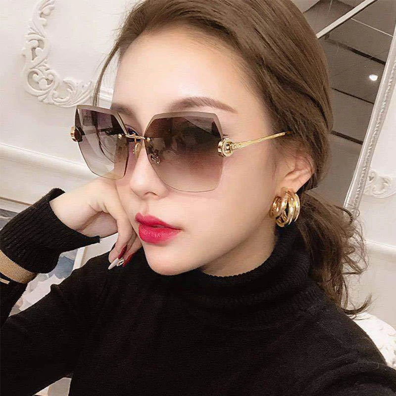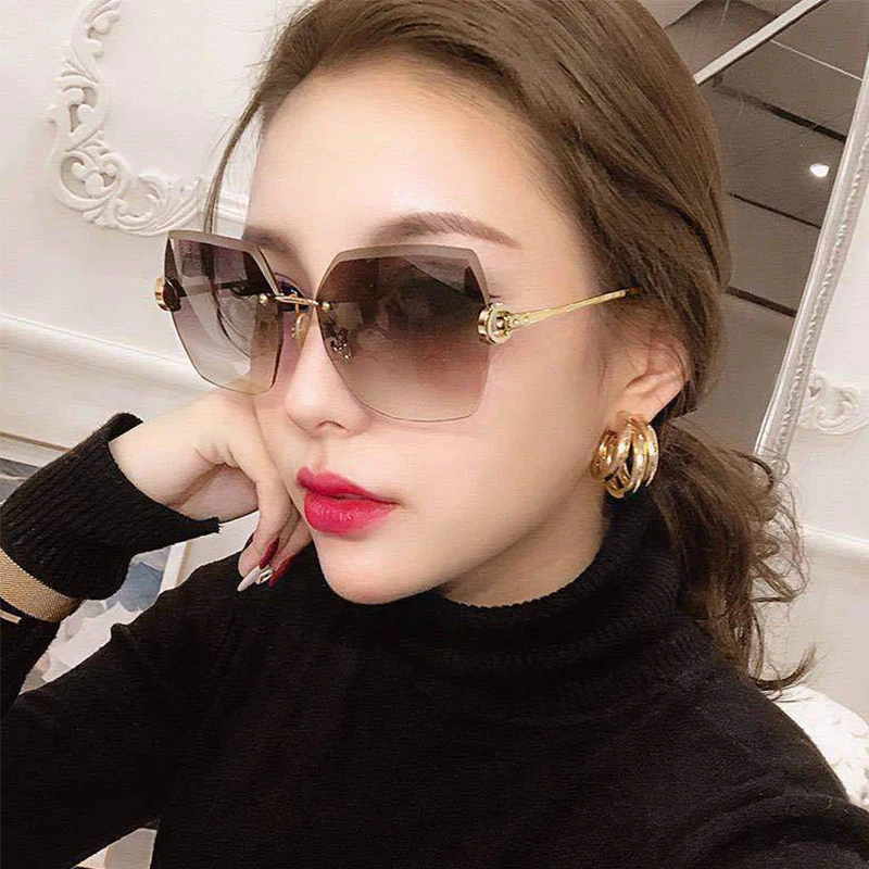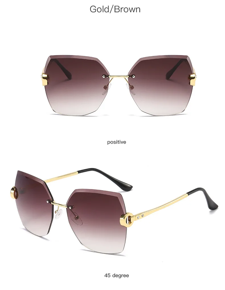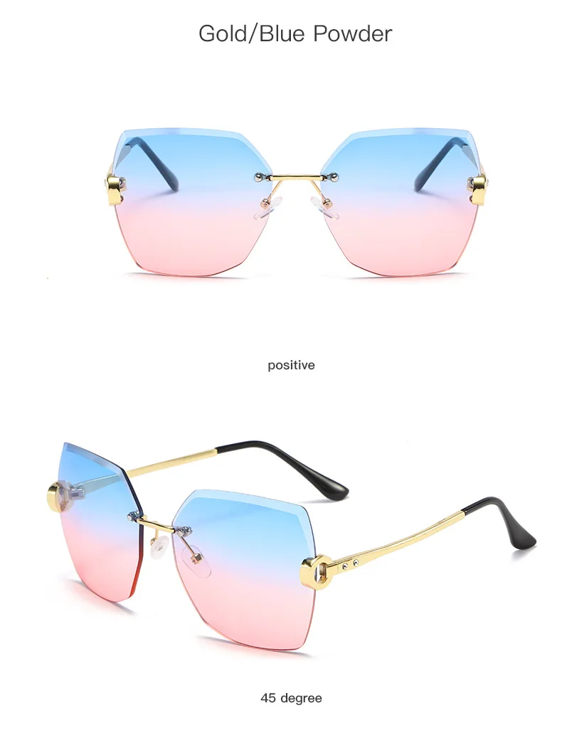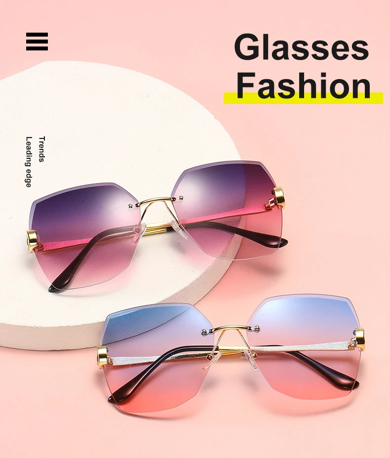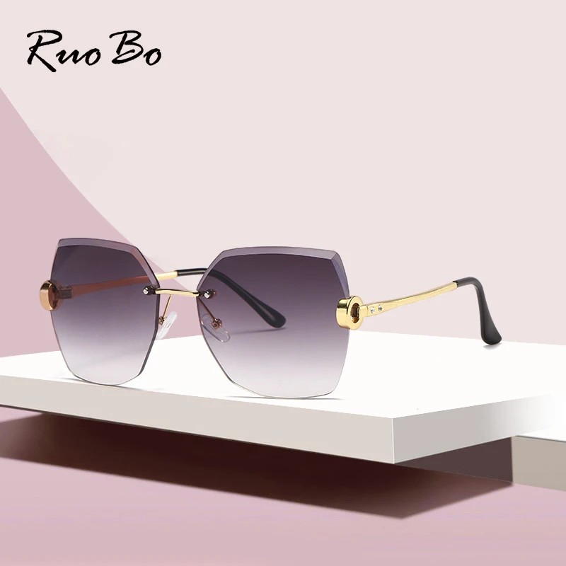 RUOBO Fashion Designer Rimless Gradient Cut Lens Sunglasses Women Metal Temples Sun Glasses UV400 Female Eyewear Wholesale