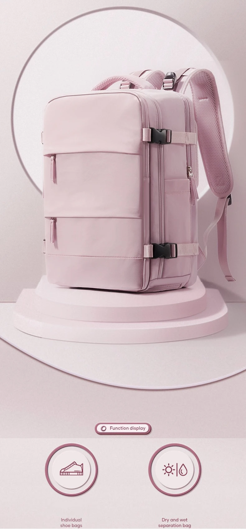 Sac à dos violet clair de grande capacité pour femmes avec séparation sèche et humide, sac d'ordinateur de transport, multifonctionnel étanche l